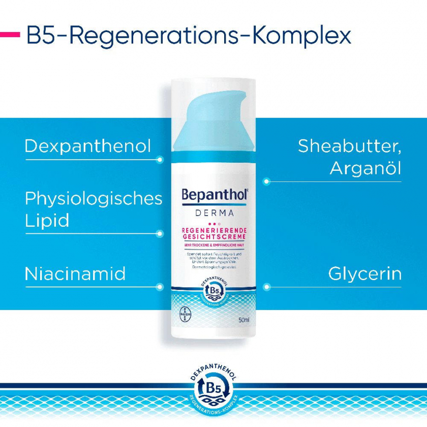 Bepanthol® DERMA Regenerierende Gesichtscreme, Gesichtspflege für empfindliche und sehr trockene Haut, dermatologisch getestete Feuchtigkeitscreme mit Dexpanthenol, nicht-komedogene Gesichtscreme
