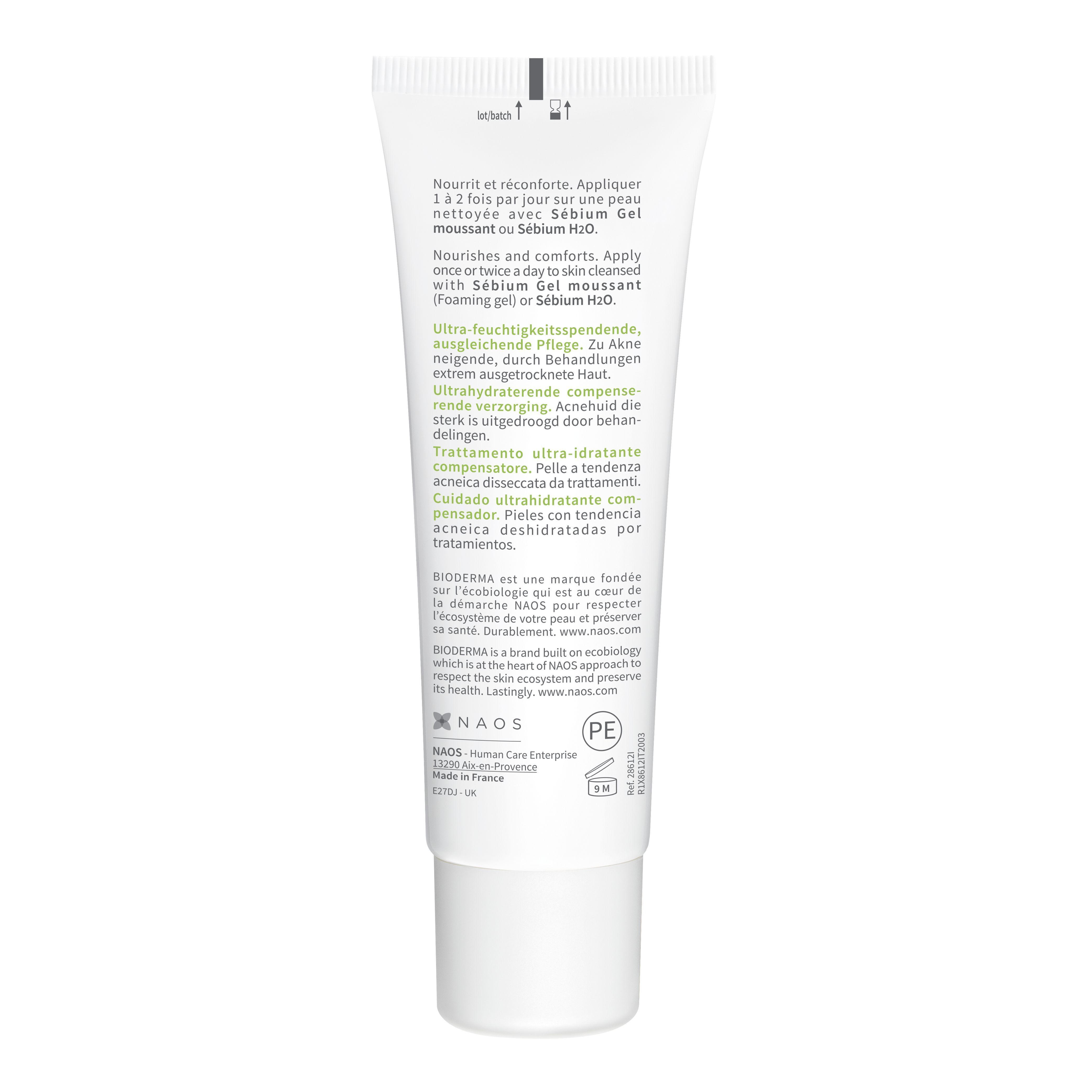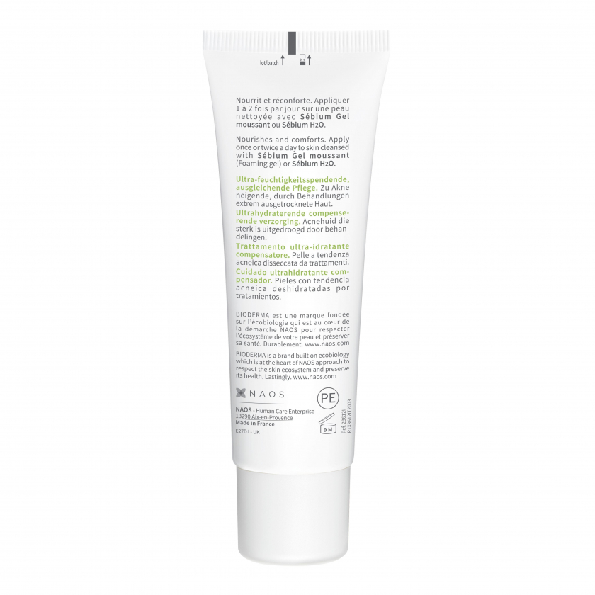 BIODERMA Sébium Hydra - ультраувлажняющий крем для очень сухой кожи, склонной к акне. Обеспечивает интенсивное увлажнение, успокаивает кожу, уменьшает покраснения и воспаления. Подходит для сопровождения дерматологических акне-терапий. Содержит патентованные компоненты FLUIDACTIV™, D.A.F.™ и успокаивающие ингредиенты. Не комедогенный, с высокой переносимостью.