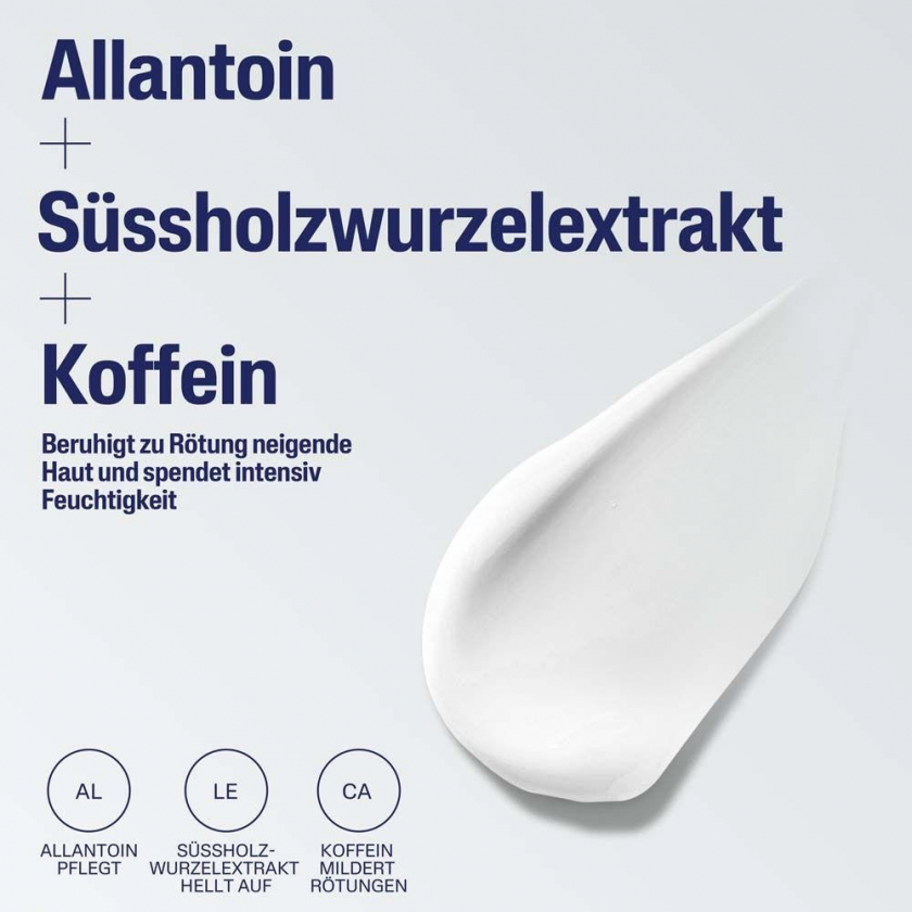 Состав: Вода, каприловый/каприновый триглицерид, глицерин, пропандиол, пентиленгликоль, масло семян подсолнечника, сорбитол, диметикон, масло ши, цетеариловый спирт, бегениловый спирт, глицерилстеарат, токоферила ацетат, акрилаты/С10-30 алкилакрилат кросс-полимер, аллантоин, ВНТ, кофеин, каприлилгликоль, церамид NP, цетеарет-20, цетиловый спирт, лимонная кислота, дикалиевая соль глицирризиновой кислоты, динатриевая соль ЭДТА, динатриевая этилендикокамид ПЭГ-15 дисульфат, глицерилстеарат цитрат, ниацинамид, пантенол, гиалуронат натрия, гидроксид натрия, ксантановая камедь