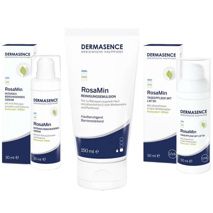 DERMASENCE RosaMin Tagespflege LSF 50 + DERMASENCE RosaMin Serum + DERMASENCE RosaMin Reinigungsemulsion