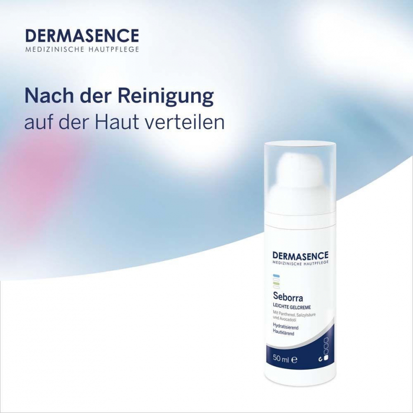 DERMASENCE Seborra Leichte Gelcreme - легкая гель-крем для очищения кожи лица, специально разработанная для жирной и комбинированной кожи, склонной к несовершенствам. Содержит успокаивающие и увлажняющие компоненты: масло авокадо, пантенол и витамин Е. Не комедогенная формула быстро впитывается, не оставляя жирного блеска.