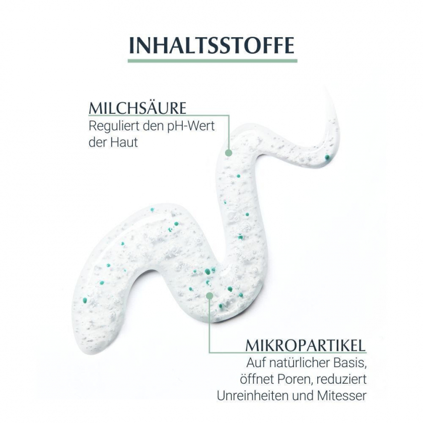 Способ применения: Нанести на влажное лицо количество размером с монету 2 евро, мягко помассировать, затем тщательно смыть водой. Использовать 1 раз в неделю или чаще по необходимости вместо очищающего геля. Избегать попадания в глаза. После применения нанести подходящий уход, например, Eucerin DermoPure Mattierendes Fluid