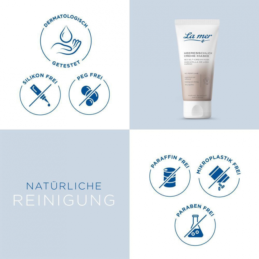 Маска-крем с морским илом La mer для ухода за кожей лица. Обладает выравнивающим, минерализующим и успокаивающим действием, содержит экстракт морского ила, пантенол и витамин А. Подходит для очищения и улучшения состояния кожи, обеспечивает эффект маски и пилинга одновременно.
