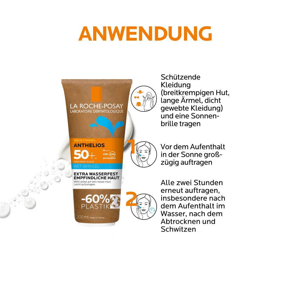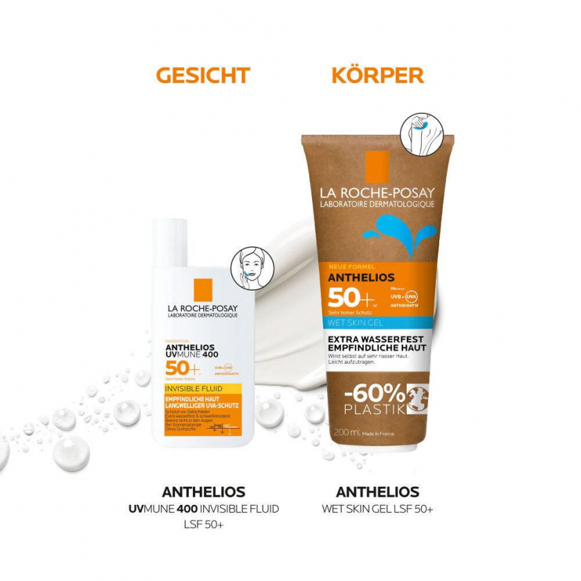 La Roche Posay Anthelios Wet Skin Gel LSF 50+: Wasserfester Sonnenschutz für empfindliche und zu Sonnenallergie neigende Haut + LRP Mini Vitamin C12 Serum 10ml GRATIS