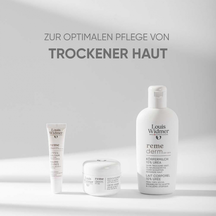 Питательный крем для лица Louis Widmer Remederm для очень сухой кожи, подходит для использования днем и ночью. Содержит коллагеновые аминокислоты, пантенол, ретинол пальмитат, мочевину и витамин E для регенерации и укрепления кожи. Подходит даже при нейродермите. Без отдушки.