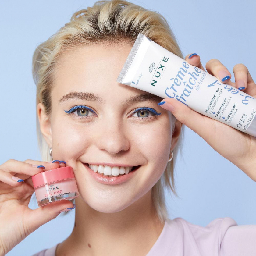 NUXE Crème Fraîche® de Beauté reichhaltig - интенсивная увлажняющая крем-сыворотка для лица и шеи с 48-часовым увлажнением и защитой от загрязнений воздуха. Содержит растительное молоко и экстракт водорослей, питает кожу, подходит для чувствительной кожи. Французская косметика премиум-класса.
