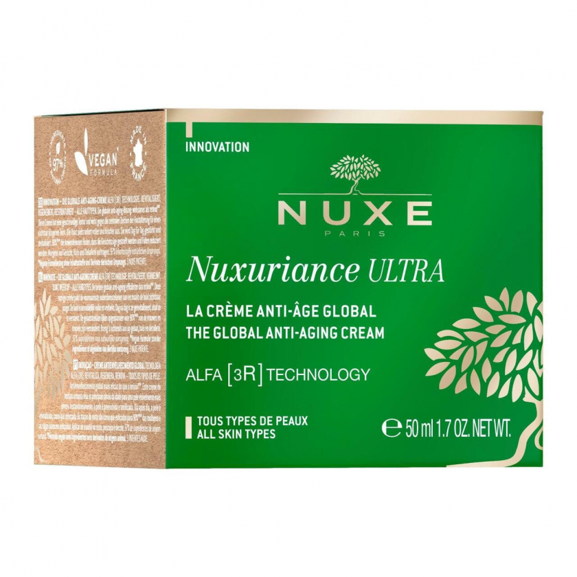 NUXE Nuxuriance Ultra - инновационная антивозрастная дневная крем для лица с ALFA [3R] технологией, эффективнее ретинола. Содержит 97% ингредиентов натурального происхождения, веганская формула. Подходит для всех типов кожи, борется с признаками старения, увлажняет и придает коже сияние. В комплекте мини-версия крема 15 мл в подарок.