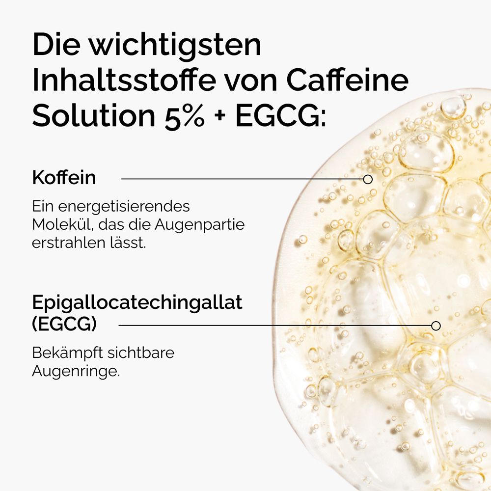 Вода, кофеин, мальтодекстрин, глицерин, пропандиол, эпигаллокатехин галлат глюкозид, галлил глюкозид, гиалуроновая кислота, окисленный глутатион, меланин, экстракт семян сои, пентиленгликоль, гидроксиэтилцеллюлоза, полиакрилат кросс-полимер-6, ксантановая камедь, молочная кислота, дегидроуксусная кислота, тринатрий этилендиамин дисукцинат, пропилгаллат, диметилизосорбид, бензиловый спирт, 1,2-гександиол, этилгексилглицерин, феноксиэтанол, каприлилгликоль