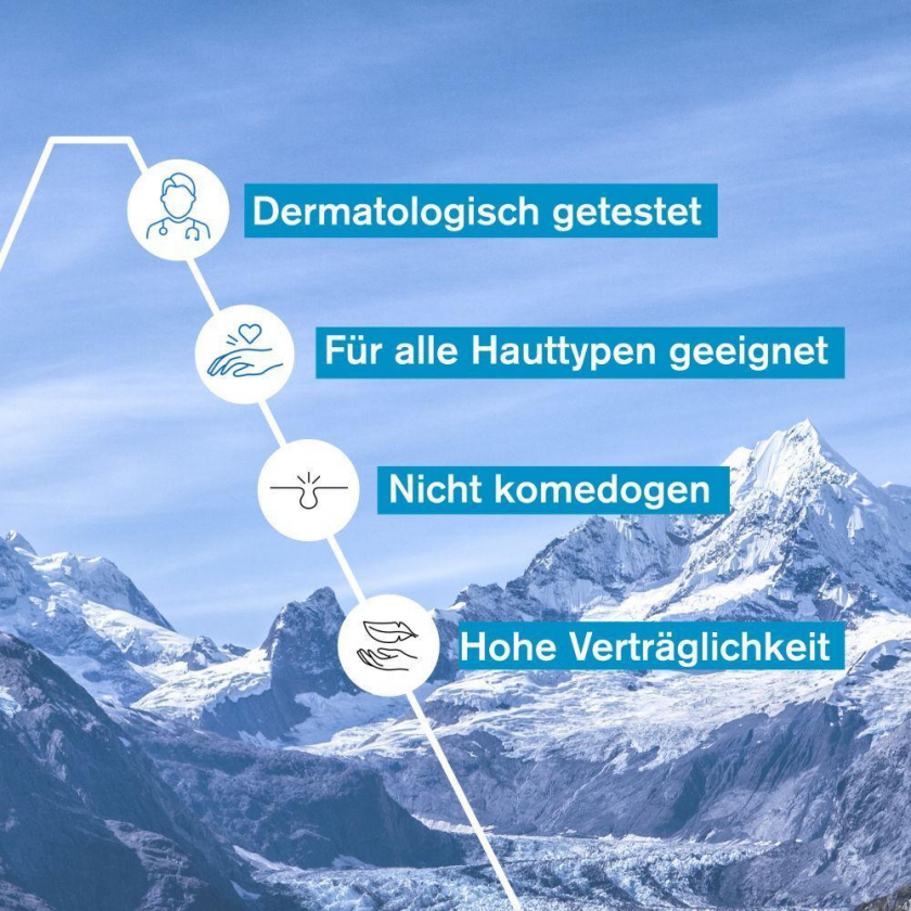 Состав: Вода, бутиленгликоль, диметикон, глицерин, 1,2-гександиол, сквалан, акрилоилдиметилтаурат аммония/сополимер VP, ксилитилглюкозид, трегалоза, мочевина, ангидроксилитол, хлорфенезин, ксилитол, о-цимен-5-ол, пентиленгликоль, серин, парфюмерная композиция, гиалуронат натрия, глюкоза, альгин, каприлилгликоль, динатрий фосфат, глицерил полиакрилат, пуллулан, экстракт цветков/листьев эдельвейса, фосфат калия, лимонная кислота, синий 1, гидроксид натрия