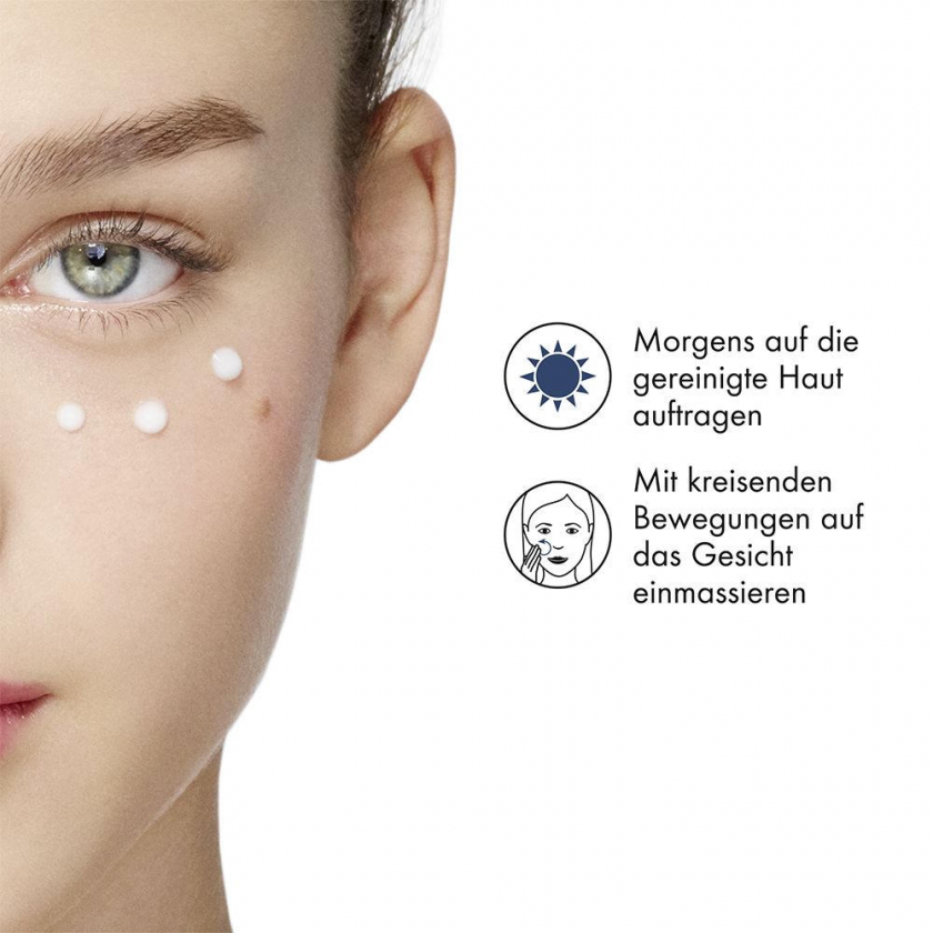 Наносить ежедневно утром и вечером на очищенную кожу лица, шеи и декольте, мягко массируя