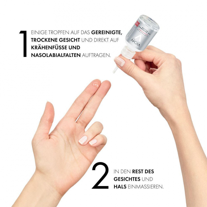 Способ применения: Наносить ежедневно утром и вечером на очищенную кожу лица равномерно с помощью аппликатора. При признаках мимических морщин и носогубных складок наносить 2-3 капли непосредственно на соответствующие участки кожи, затем аккуратно втирать продукт пальцами в кожу