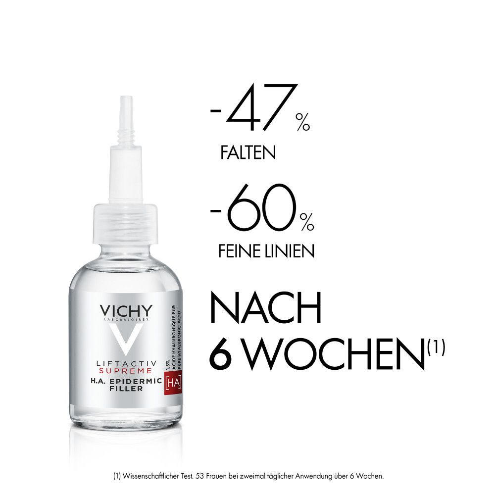 Vichy Liftactiv Supreme Hyaluron Serum - высококонцентрированное антивозрастное сыворотка с гиалуроновой кислотой и витамином C. Заполняет дефицит гиалурона в коже, разглаживает морщины, укрепляет кожный барьер и придает коже упругость. Легкая текстура быстро впитывается, подходит как основа под макияж.