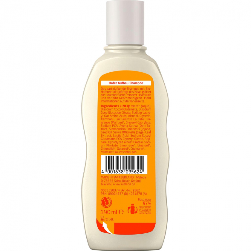 Натуральный шампунь Weleda для сухих и поврежденных волос. Мягко очищает, разглаживает поверхность волос, уменьшает ломкость и секущиеся кончики. Содержит органическое масло жожоба и экстракты овса и шалфея. Без силиконов и сульфатных ПАВ.