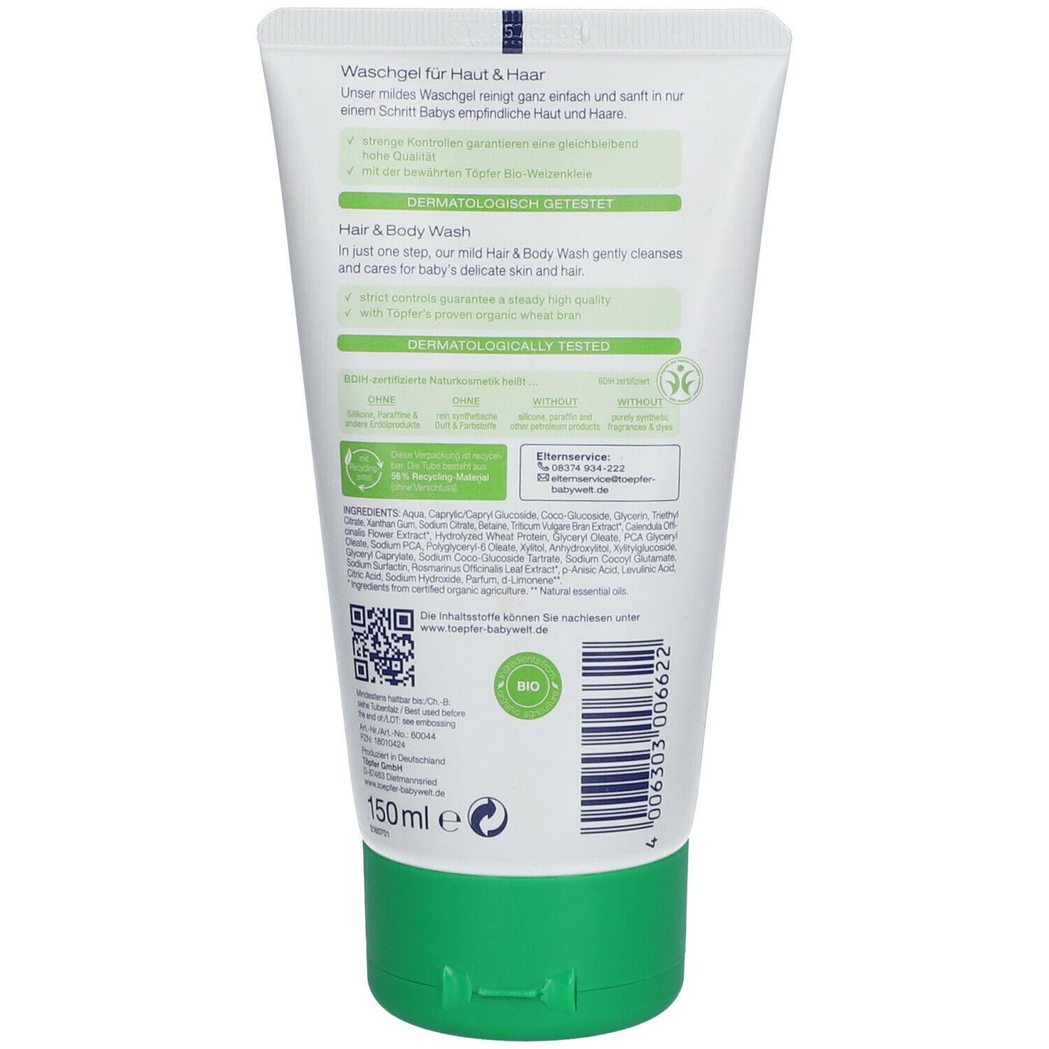 Töpfer Waschgel для кожи и волос - сертифицированная натуральная косметика с органической пшеничной отрубью и календулой. Дерматологически протестированное, веганское средство для мягкого очищения кожи и волос.
