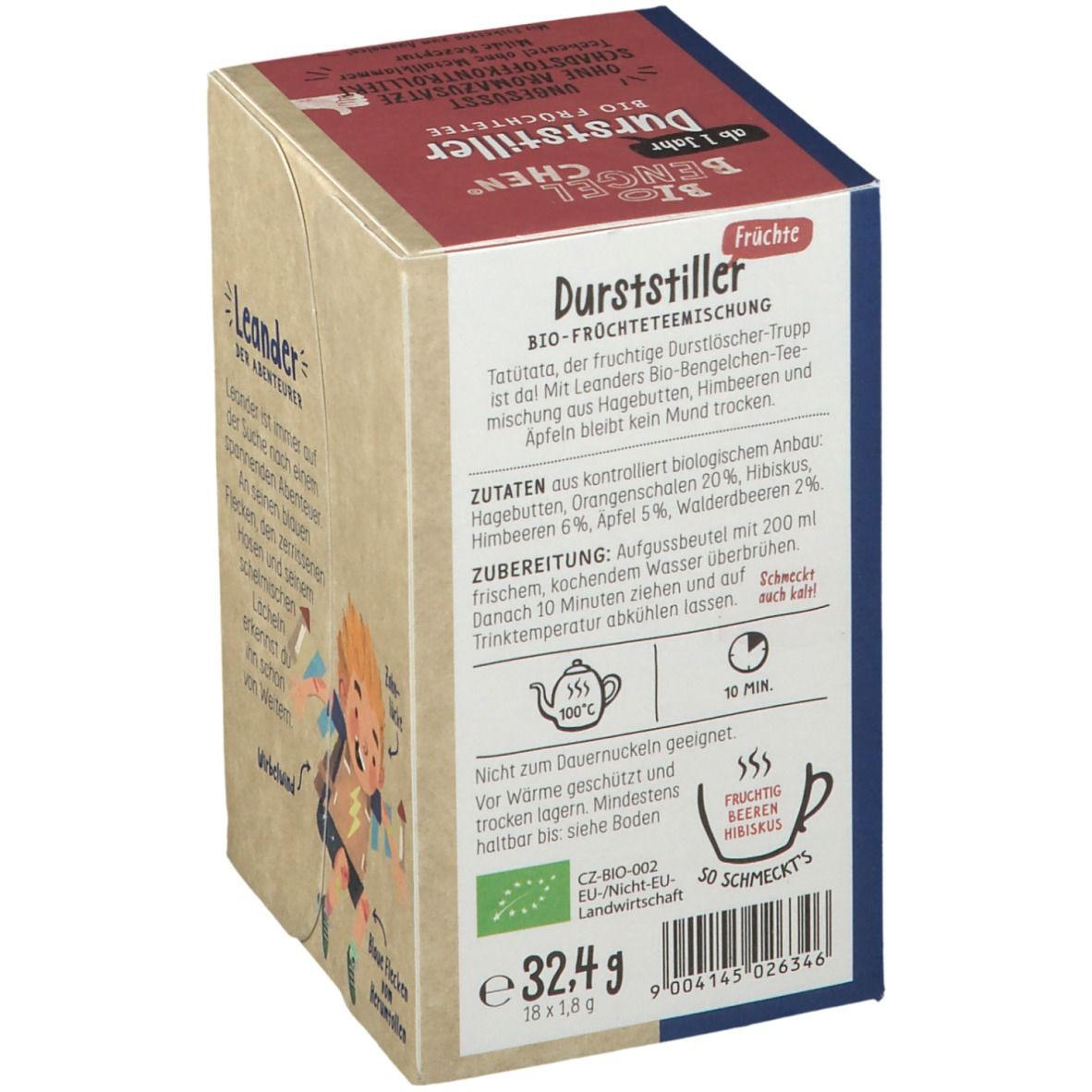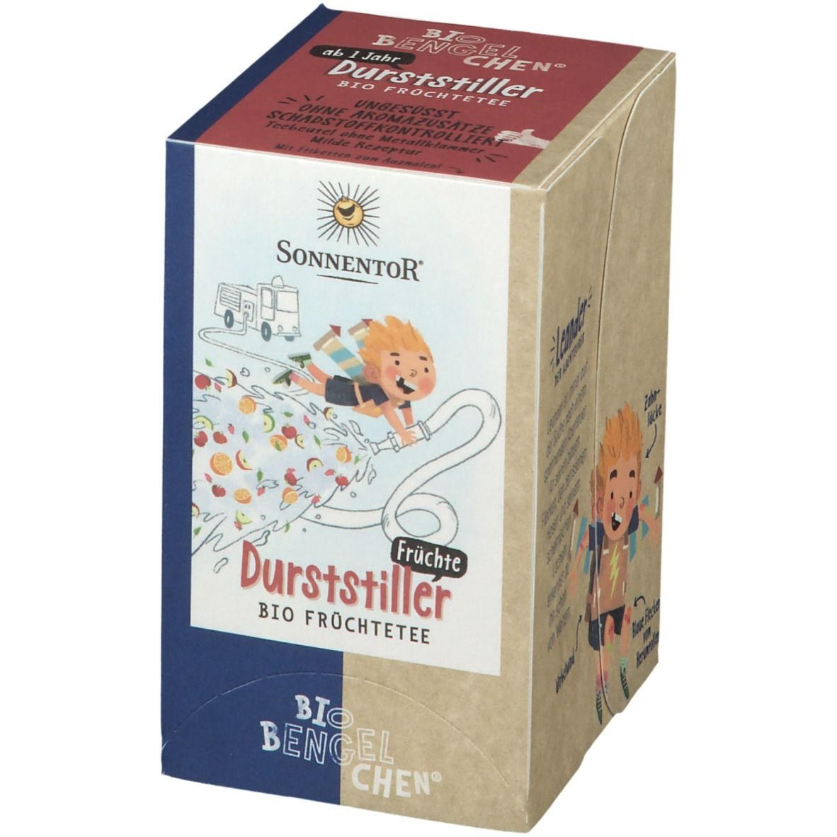 Органический фруктовый чай SonnentoR Durststiller с ягодами и гибискусом. Фруктовая смесь с хагебуттеном, малиной, яблоком и лесными ягодами. Подходит для приготовления горячего и холодного чая. 18 двойных пакетиков по 1,8 г каждый. Произведено в Австрии.