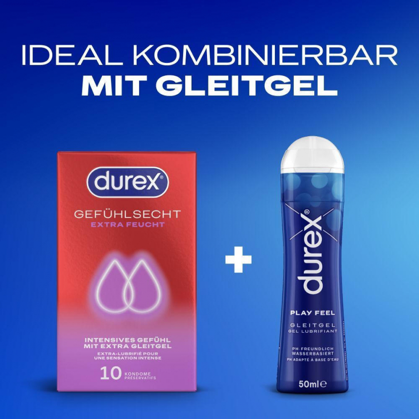 Тонкие презервативы Durex Gefühlsecht Extra Feucht с анатомической формой Easy-On и большим количеством силиконовой смазки для интенсивных ощущений. Имеют обычную посадку с номинальной шириной 56 мм, прозрачные, с приятным запахом. Проходят 5 тестов качества, дерматологически протестированы и на 100% проверены электронным способом.