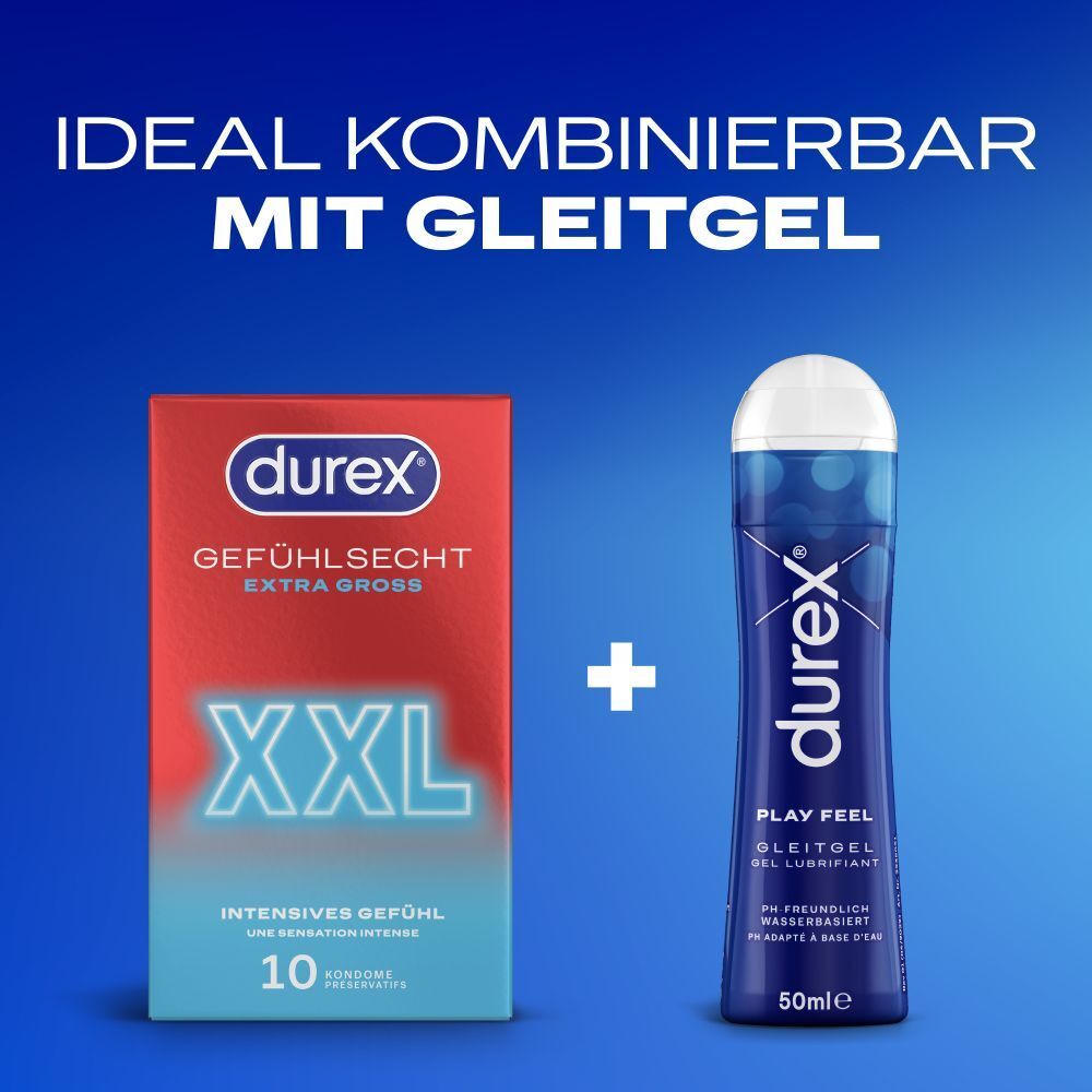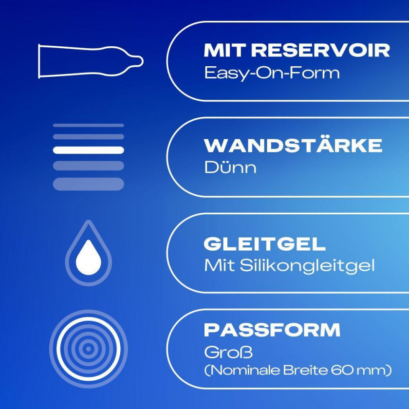 Durex Gefühlsecht XXL - презервативы увеличенного размера (номинальная ширина 60 мм) с анатомической формой Easy-On для комфортной посадки. Тонкие для интенсивных ощущений, с силиконовой смазкой и приятным запахом. Проходят 5 тестов качества, дерматологически протестированы и 100% проверены электронным способом.