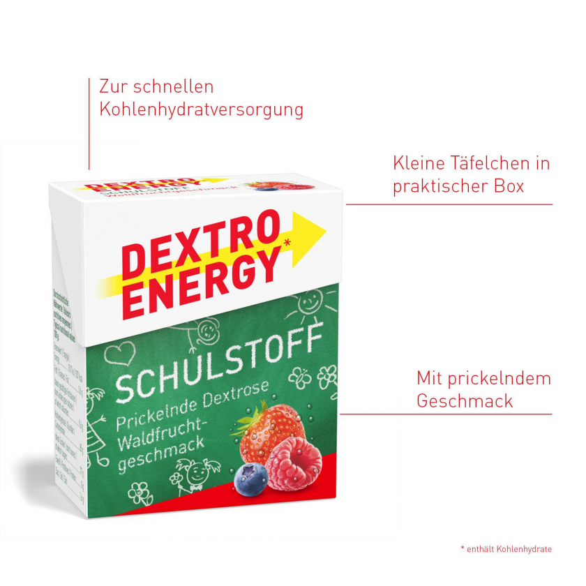 Энергетические таблетки Dextro Energy Schulstoff с лесными ягодами - быстроусвояемый глюкозный продукт для мгновенного восполнения энергии при умственных и физических нагрузках. Практичная упаковка с индивидуальными таблетками.