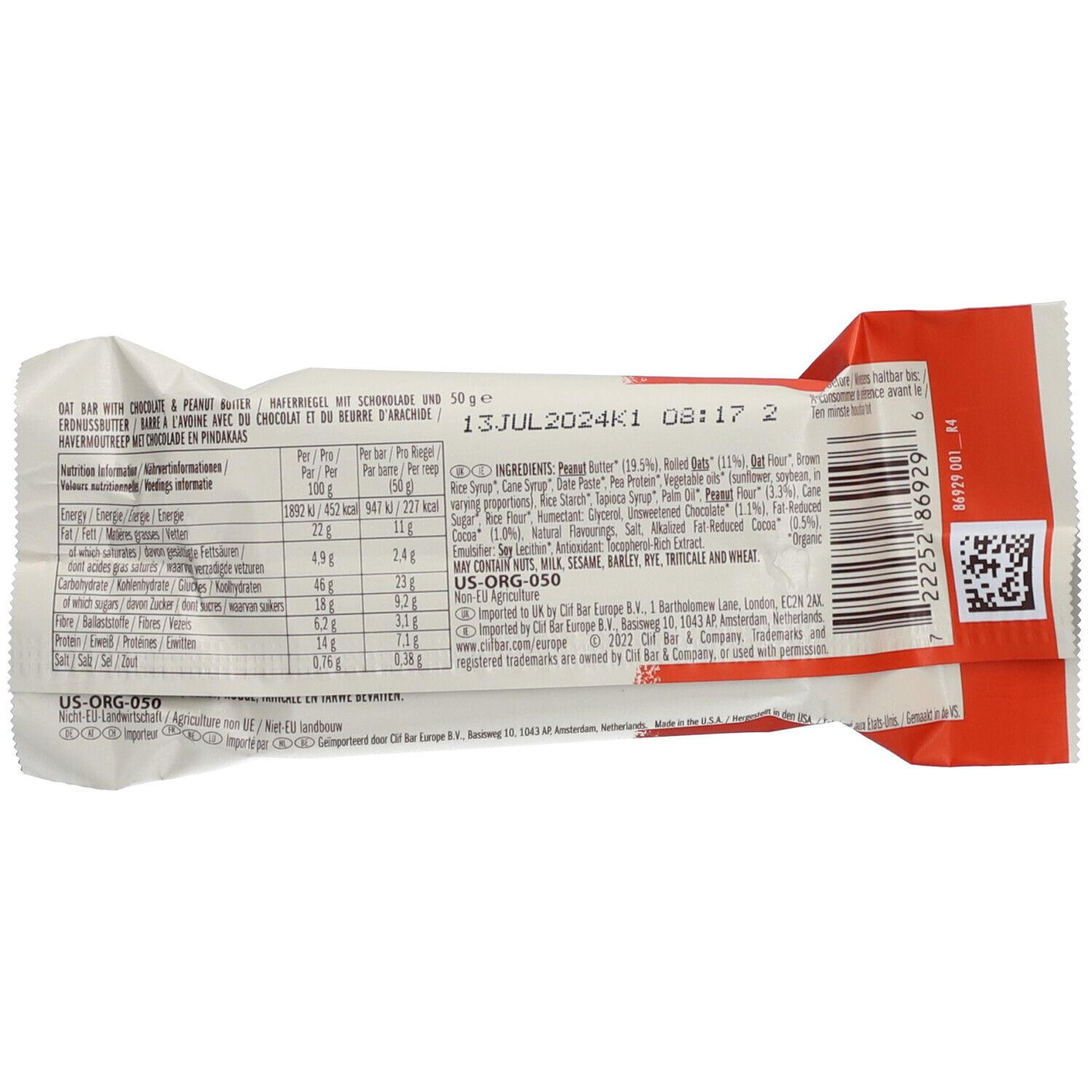 Органический энергетический батончик CLIF Bar с шоколадно-арахисовой начинкой, идеальный для перекуса между приемами пищи. Содержит органические ингредиенты, богат белком (14 г на 100 г) и клетчаткой. Подходит для активного образа жизни, производится в Германии компанией Lifebrands Natural Food GmbH.