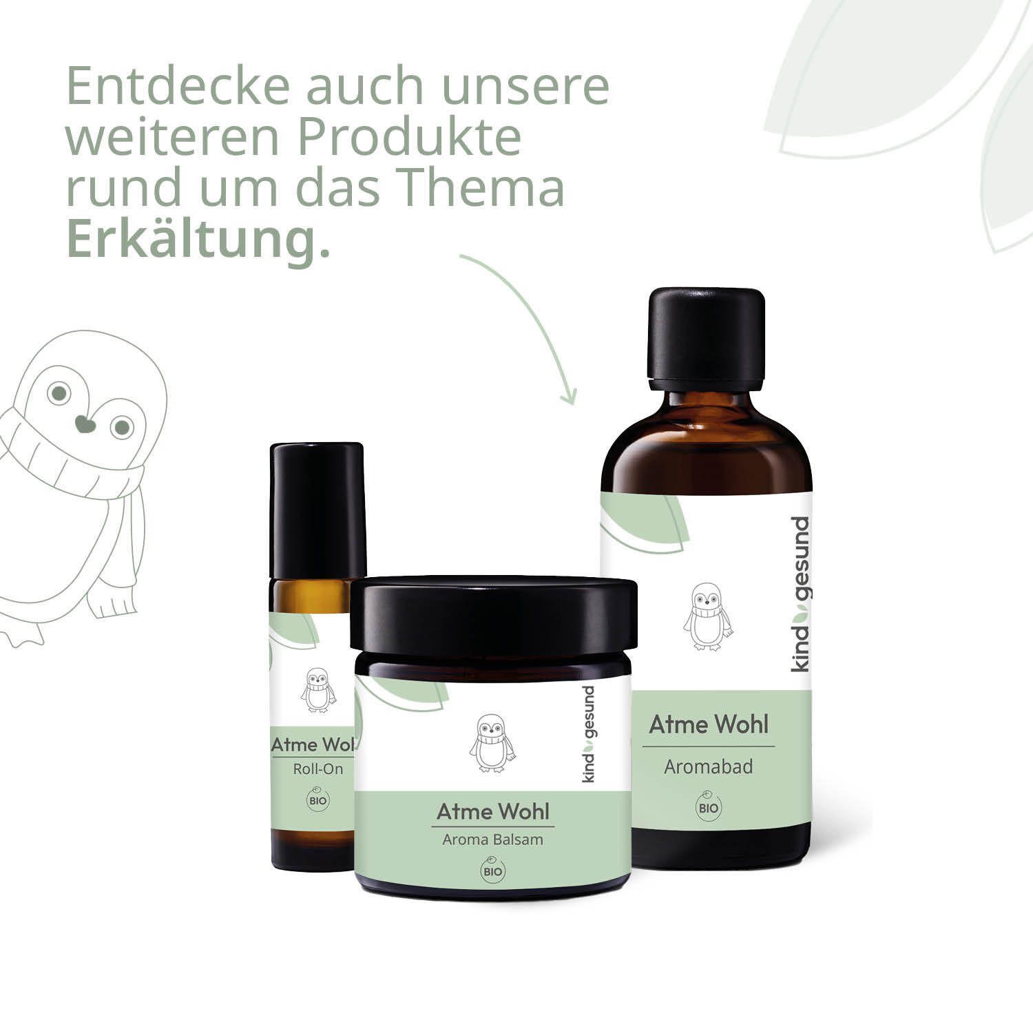Bio-Atme Wohl Roll-On от kindgesund - натуральное средство с органической перечной мятой для поддержки дыхания детей в период простуд. Ролл-он для нанесения на пульсовые точки, ароматизации помещения и ночного использования. Безопасная формула с эфирными маслами для облегчения дыхания и создания комфортной атмосферы.