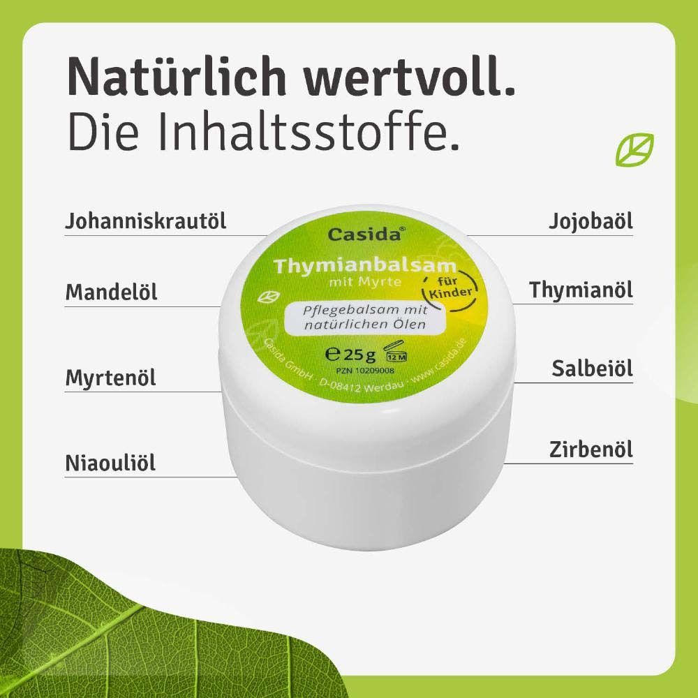 Детский тимьяновый бальзам с миртом - натуральный уходовый бальзам для детей с эфирными маслами без консервантов. Рекомендован акушерками, помогает облегчить дыхание, подходит для детей от 1 года. Наносится на грудь и спину 3 раза в день.