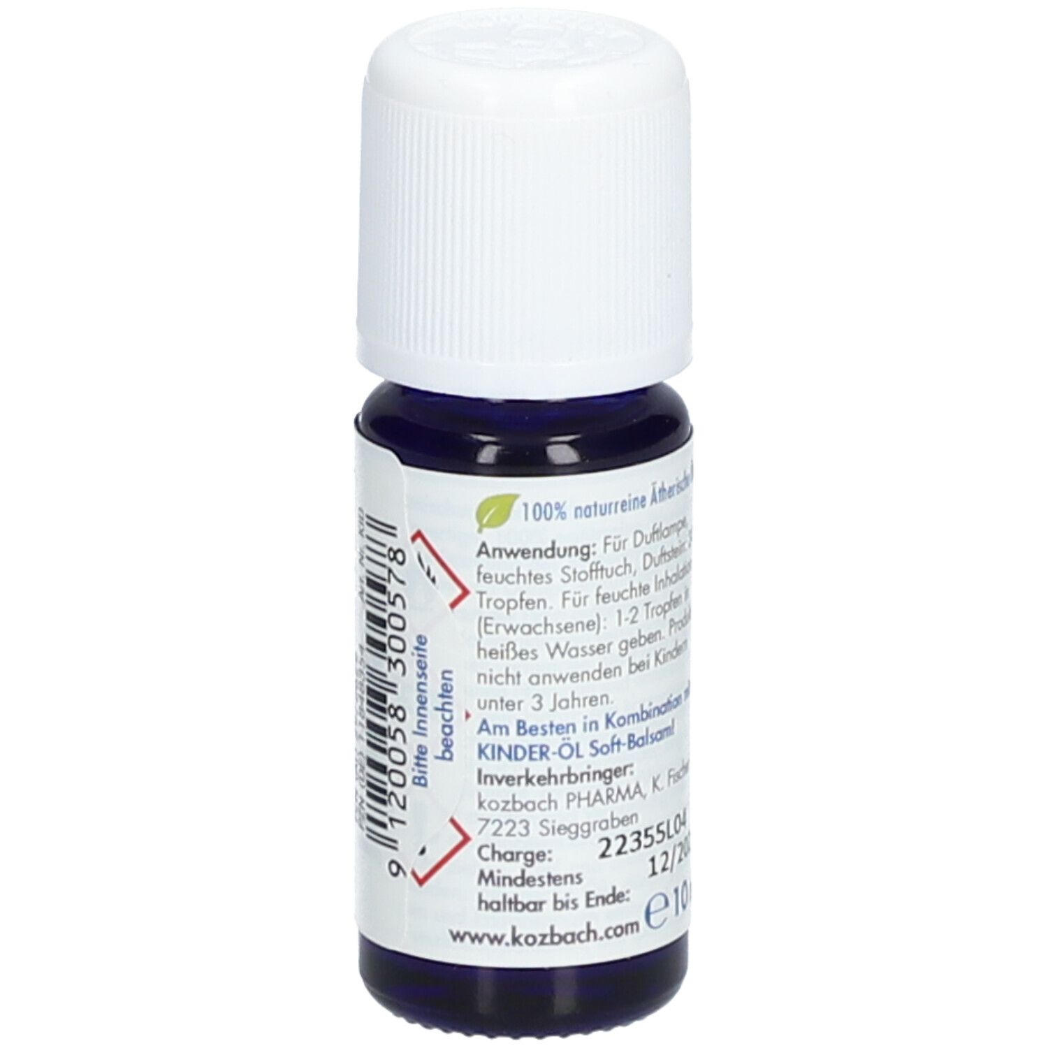 Детское ароматическое масло kozbach Kinder-Öl - натуральная смесь эфирных масел для ароматерапии при простудах и создания приятной атмосферы в детской комнате. Подходит для детей от 3 лет, производится в Австрии из 100% натуральных компонентов, веганское средство.