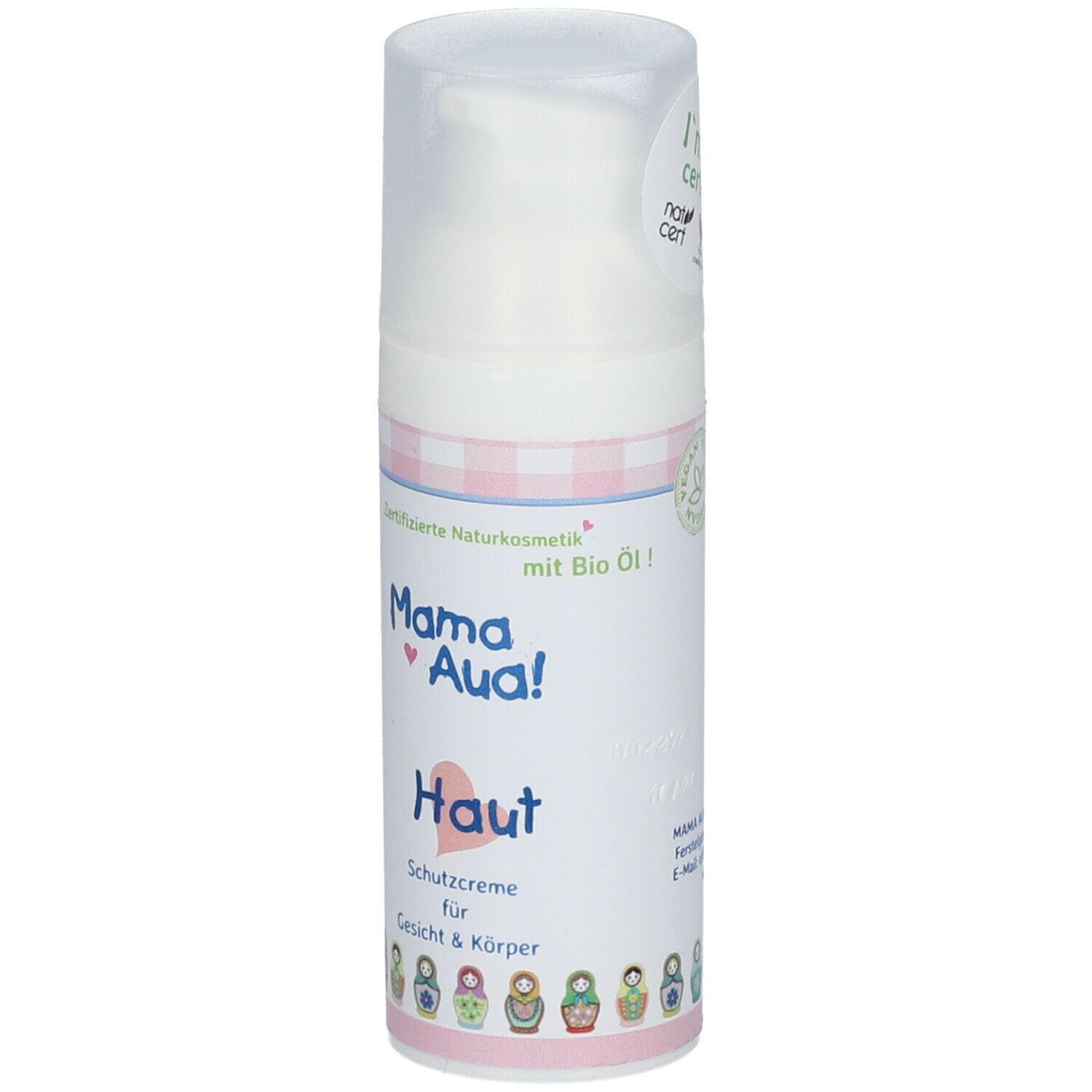 Mama Aua! Hautschutzcreme - нежная защитная крем-эмульсия для чувствительной детской кожи и кожи с нейродермитом. Содержит 100% органическое масло ши, масло авокадо и кокосовое масло. Без искусственных эмульгаторов, отдушек, красителей и консервантов. Подходит для ежедневного ухода за лицом и телом.