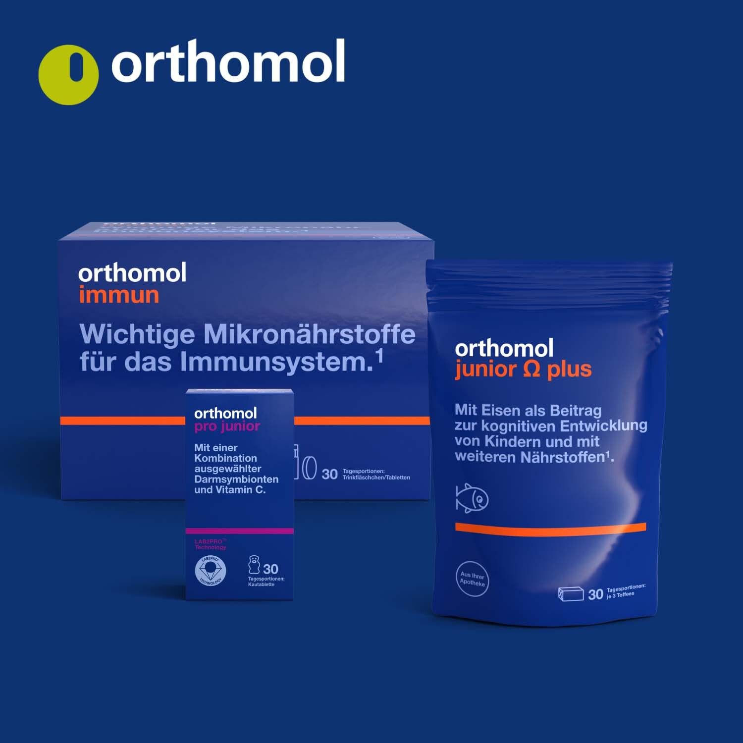 Orthomol junior C plus - mit Vitamin C als Beitrag zu einer normalen Funktion des Immunsystems - Waldfrucht und Mandarine-Orange - Kautabletten
