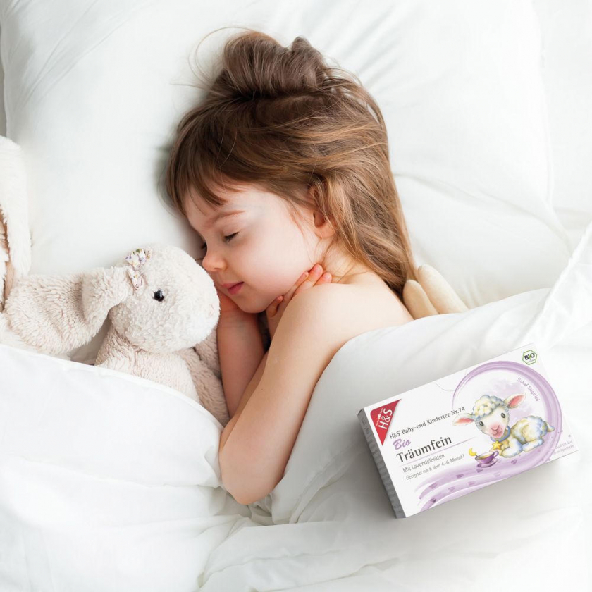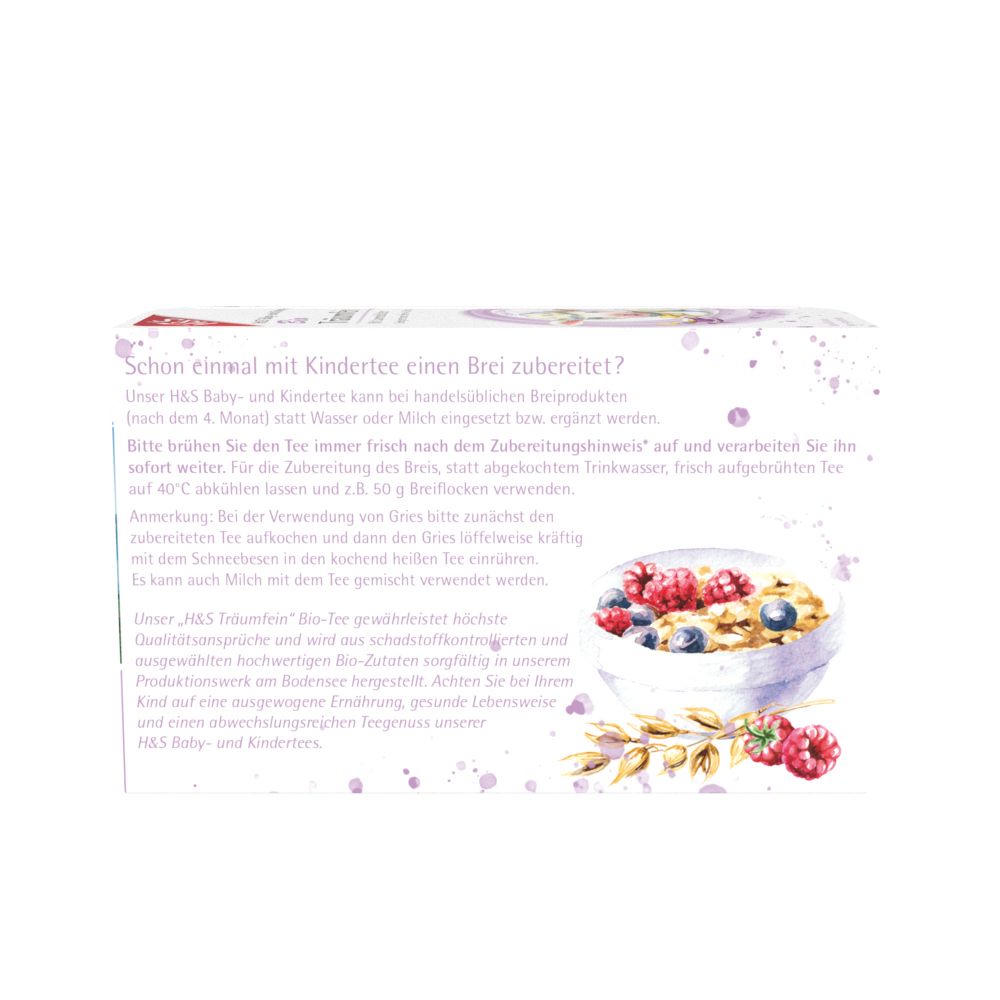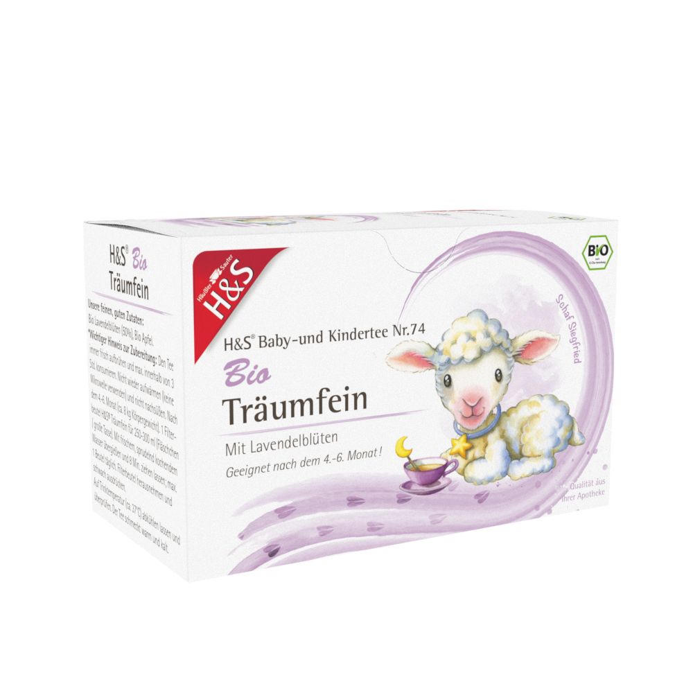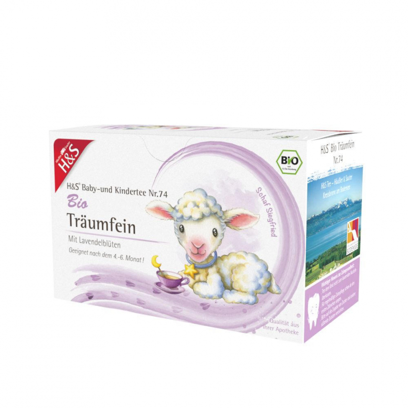 H&S Baby- und Kindertee Träumfein - травяной чай для детей с 4-6 месяцев, содержащий органическую лаванду и яблоко. Способствует спокойному сну, готовится из 1 фильтр-пакета на 250-300 мл кипятка с настаиванием 8 минут. Рекомендуется не более 1 пакетика в день.