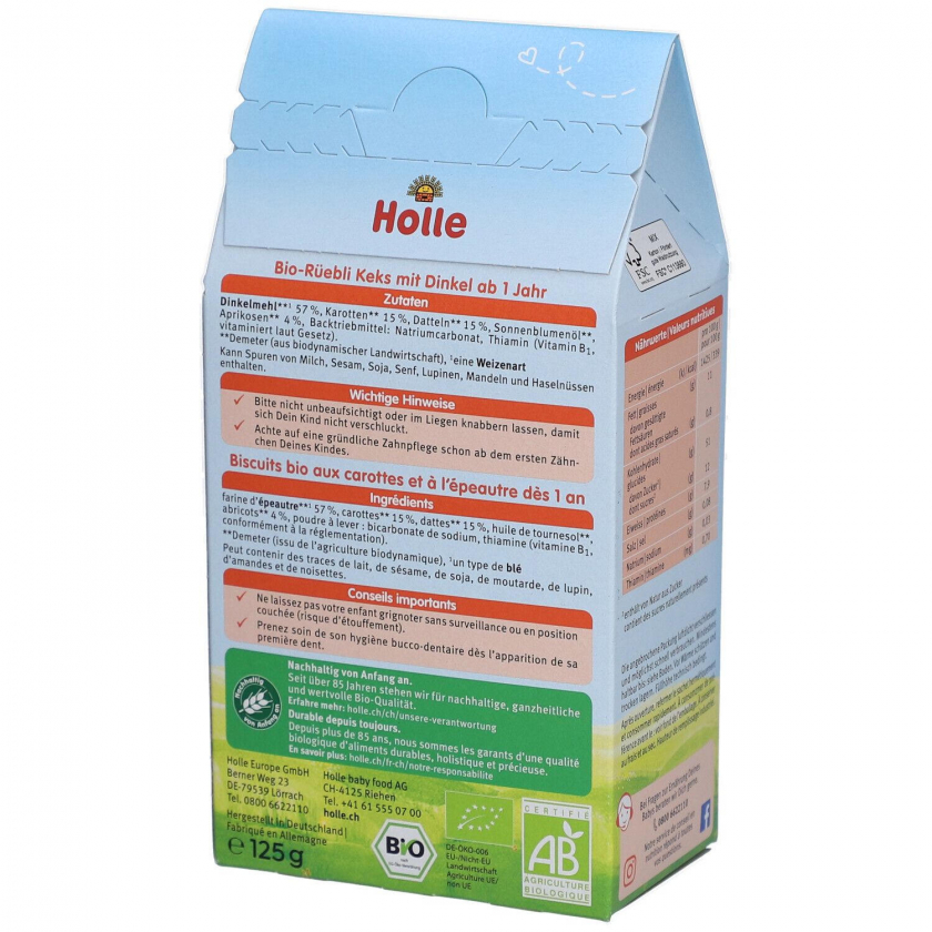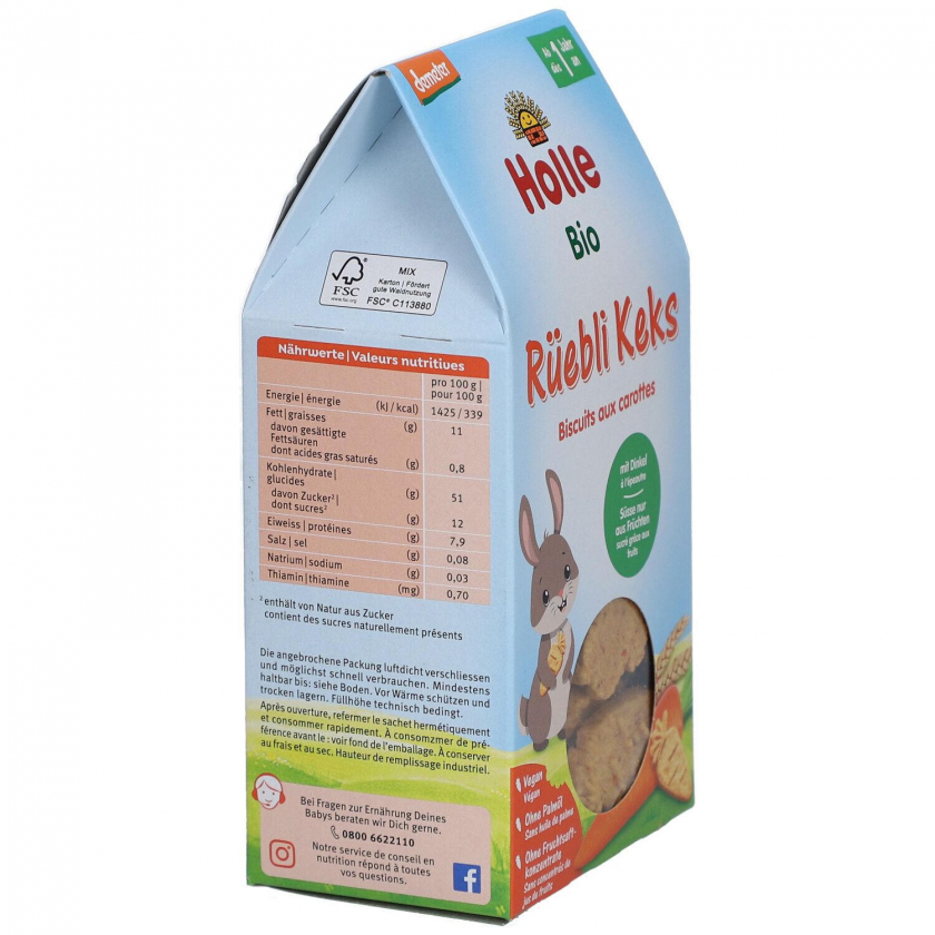Органическое детское печенье Holle Bio-Karottenkekse с морковью для детей от 1 года. Печенье Demeter качества с финиками и абрикосами вместо фруктовых концентратов, без пальмового масла. Веганский продукт из биодинамического сельского хозяйства с добавлением витамина B1.