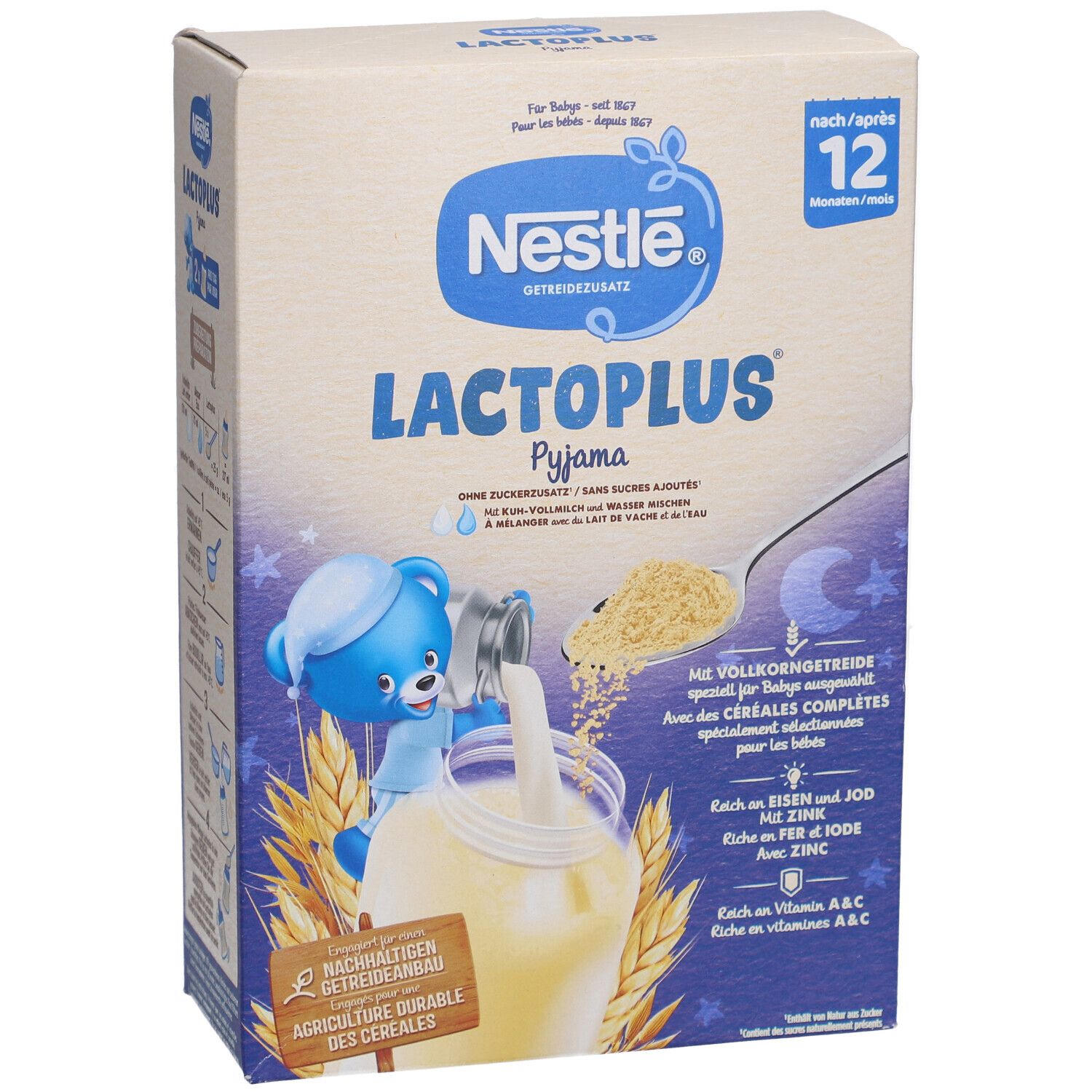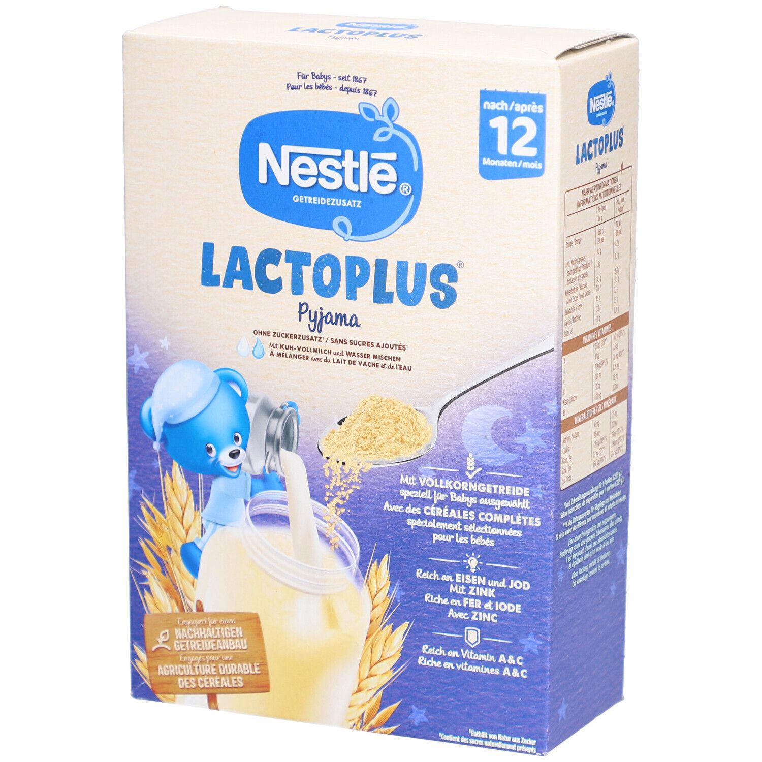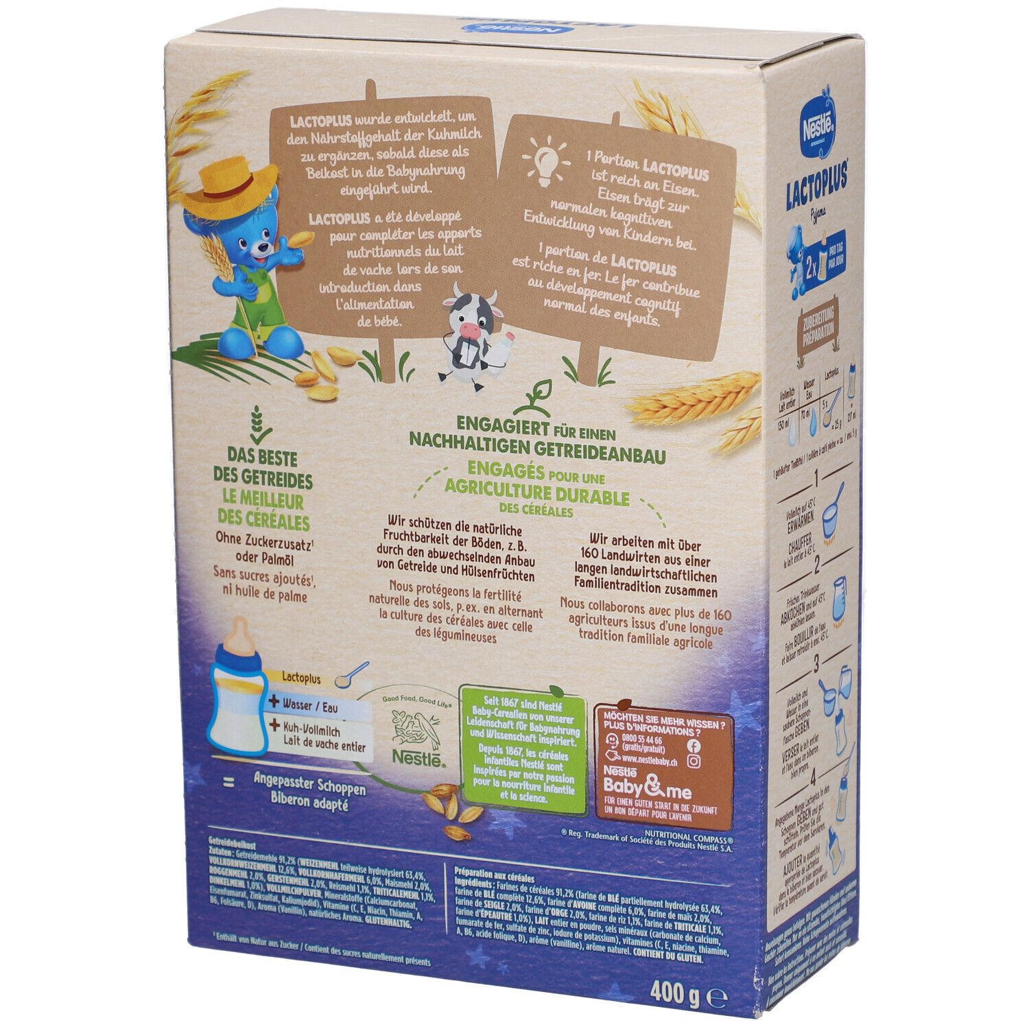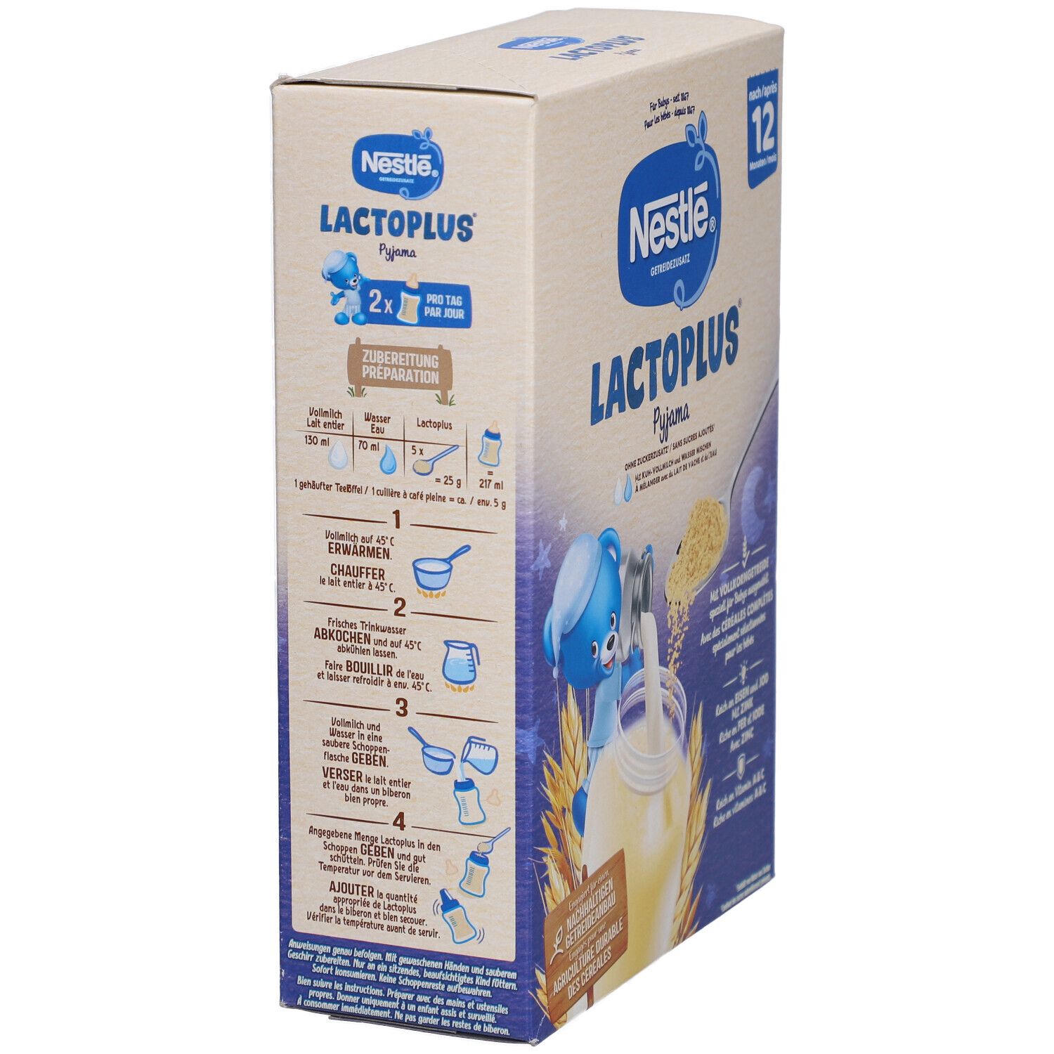 Nestlé Lactoplus Malt - детское питание для детей 1-3 лет, которое разводится с коровьим молоком для создания сбалансированной молочной смеси. Содержит зерновые муки, сухое молоко, витамины и минералы. Без добавления сахара, обогащено витаминами A, C, D, кальцием и железом.