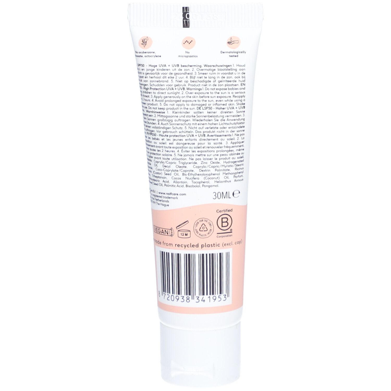 Минеральный солнцезащитный крем NAÏF® с SPF 50 для детей и младенцев. Водостойкая формула на основе оксида цинка обеспечивает мгновенную защиту от UVA/UVB лучей. Без микропластика, парабенов и вредных химикатов. Дерматологически протестирован, веганский, подходит для чувствительной детской кожи. Упаковка из переработанного пластика.