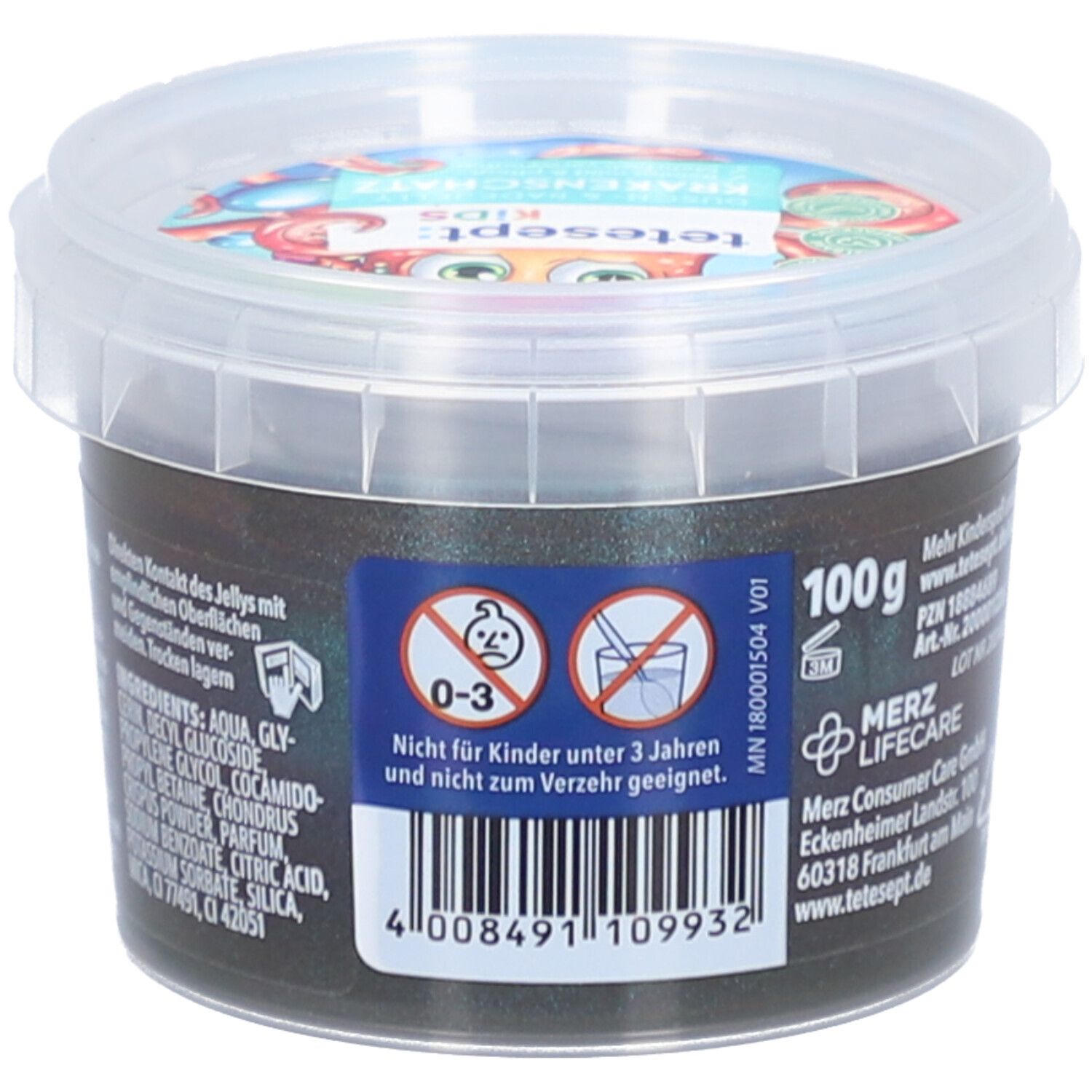 Детское гель для душа и ванны Krakenschatz от tetesept с желеобразной текстурой для веселого купания. Подходит для детей от 3 лет, не содержит микропластика, дерматологически протестирован. Многоразовое использование после высыхания. В упаковке 6 контейнеров по 100 г.