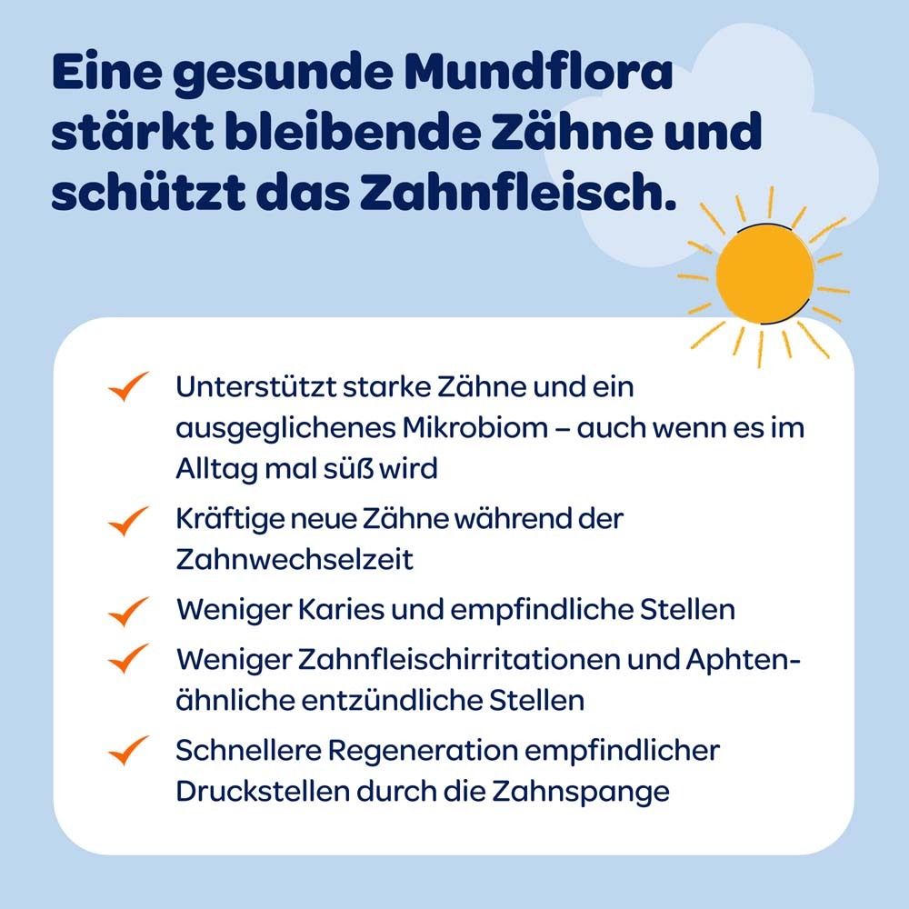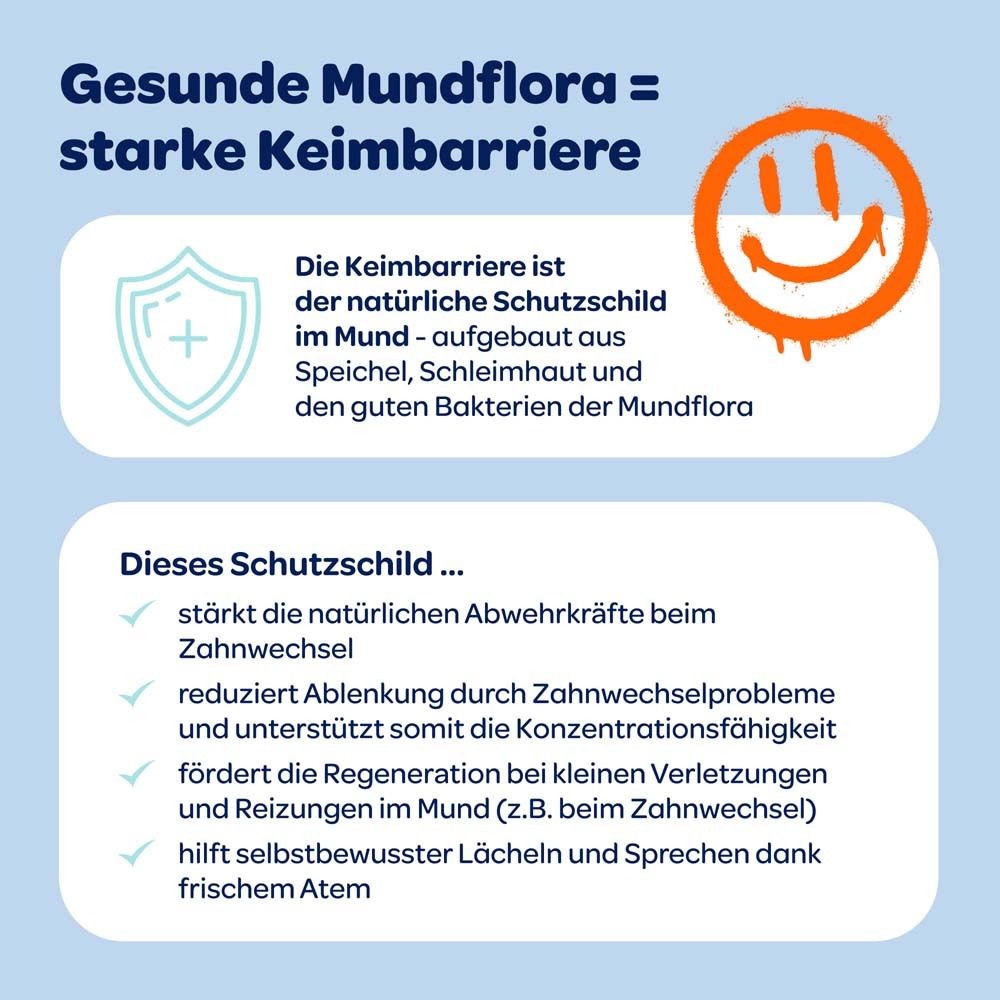 Детская зубная паста Dentinox Zahncreme Mundflora+ Junior специально разработана для детей 6-12 лет в период смены зубов. Содержит фторид натрия (1450 ppm) для защиты от кариеса, пантенол и гиалуронат для успокоения десен, микробиом-комплекс для поддержания баланса микрофлоры полости рта. Без консервантов, красителей, сахара, лактозы и глюгена. 98% ингредиентов натурального происхождения, веганская.