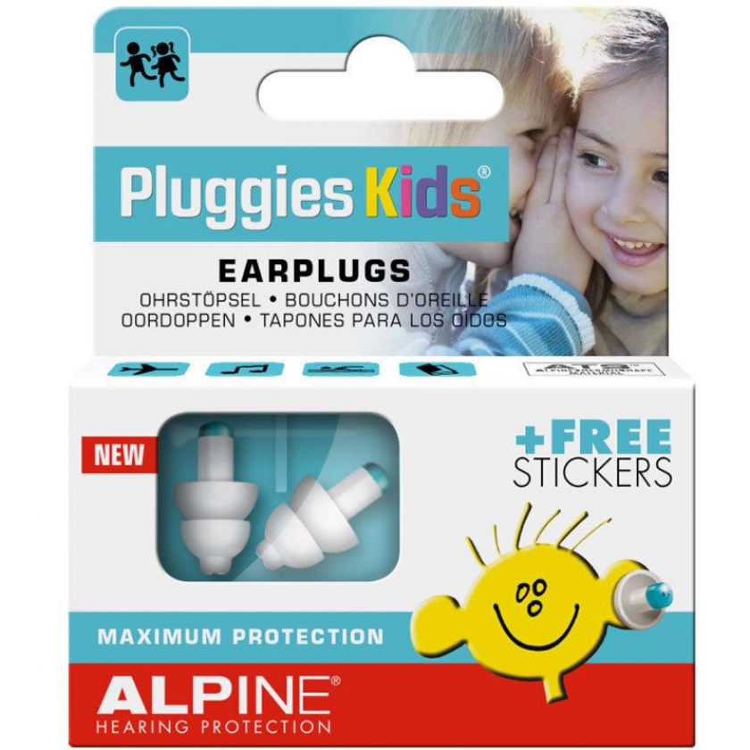 Детские беруши Pluggies Kids от Alpine - многофункциональные ушные вкладыши для защиты слуха детей 3-12 лет от громкого шума, воды и для улучшения концентрации. Имеют уникальные акустические фильтры, мягкий термопластичный материал и подходят для плавания, школы, полетов и других ситуаций