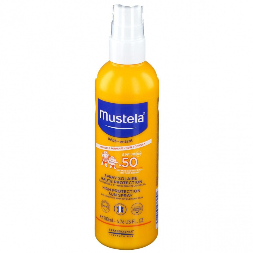 Солнцезащитный спрей Mustela SPF 50 для детей с высокой степенью защиты от UVB/UVA лучей. Подходит для чувствительной, непереносящей солнце и атопичной кожи. Устойчив к хлорированной и соленой воде, песку. Клинчески доказана высокая переносимость.