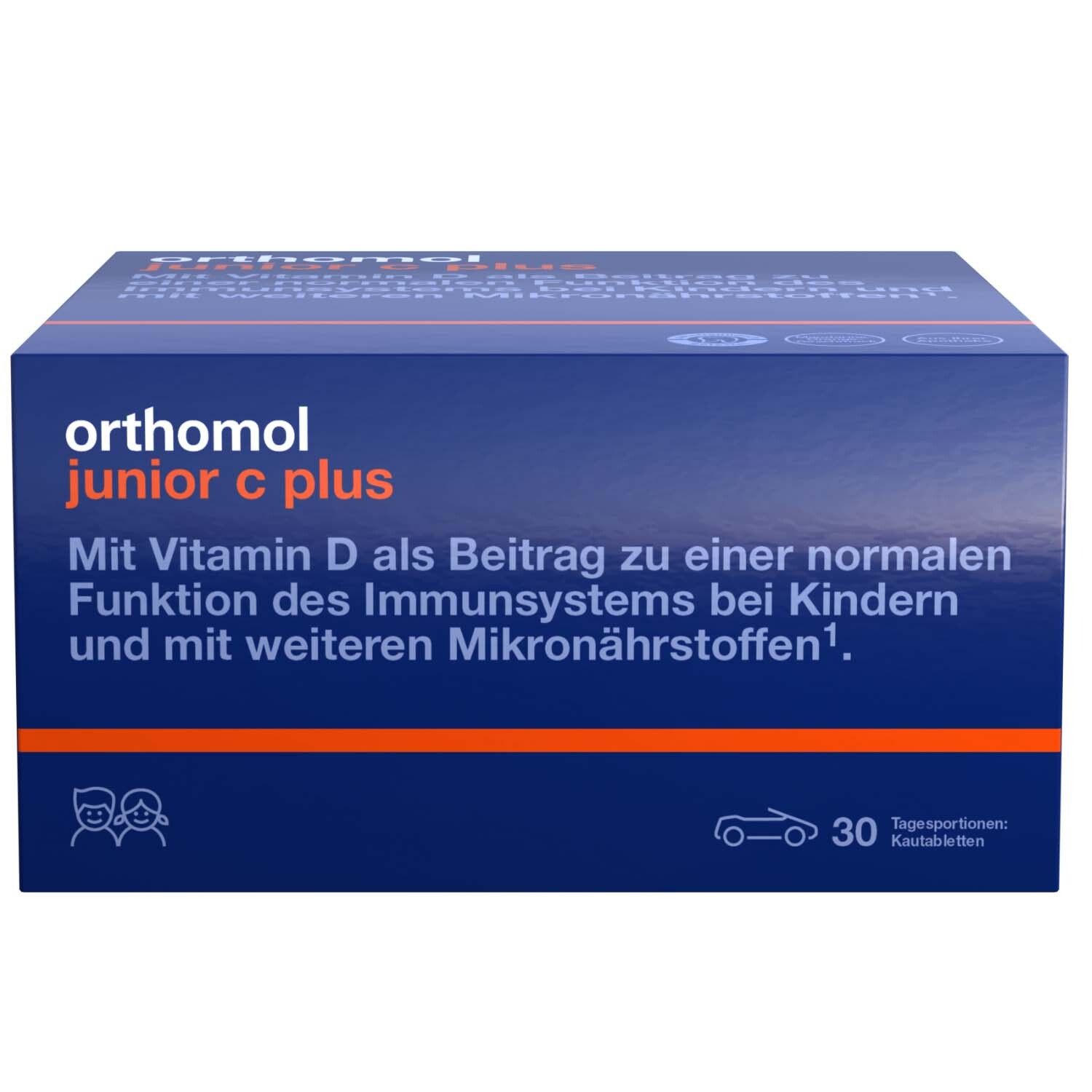 Orthomol junior C plus - mit Vitamin C als Beitrag zu einer normalen Funktion des Immunsystems - Mandarine/Orangen-Geschmack - Kautabletten