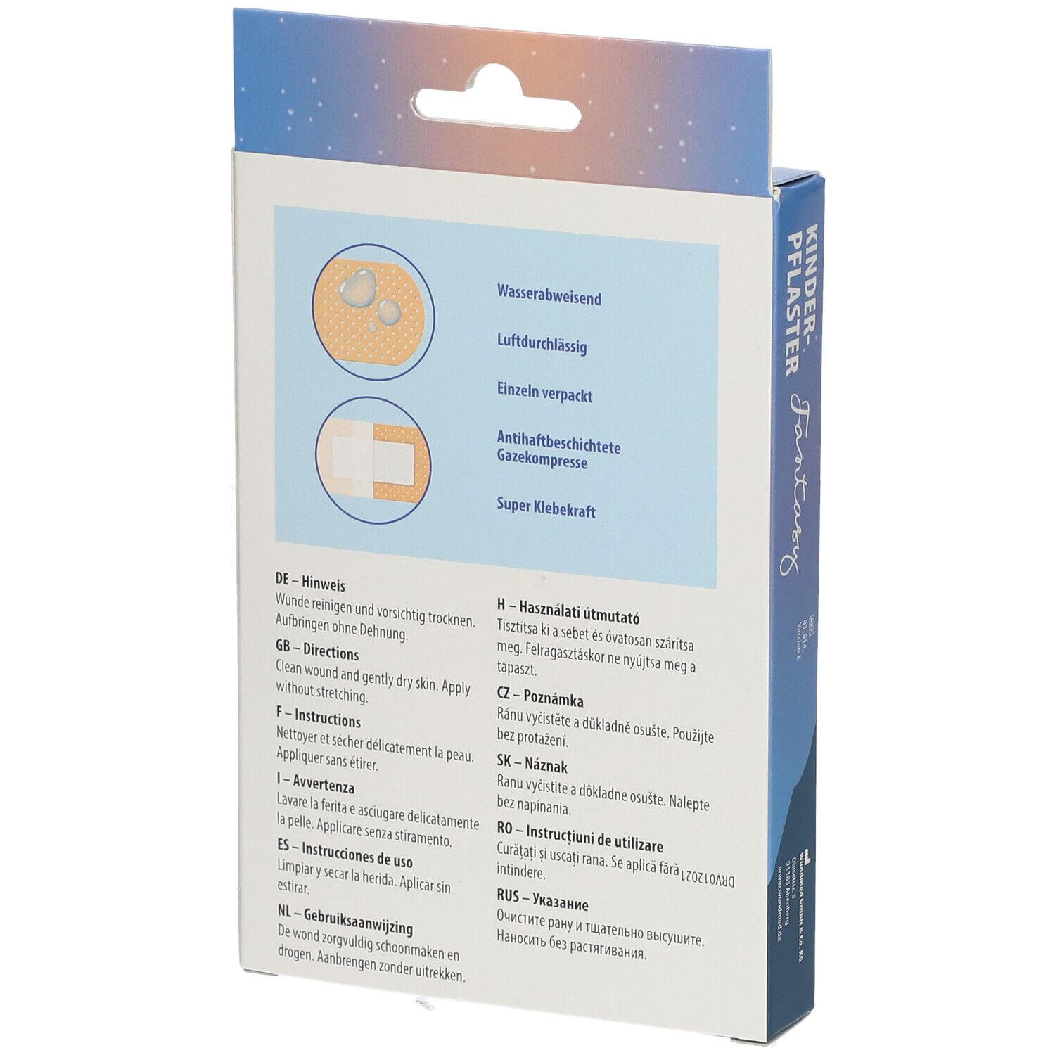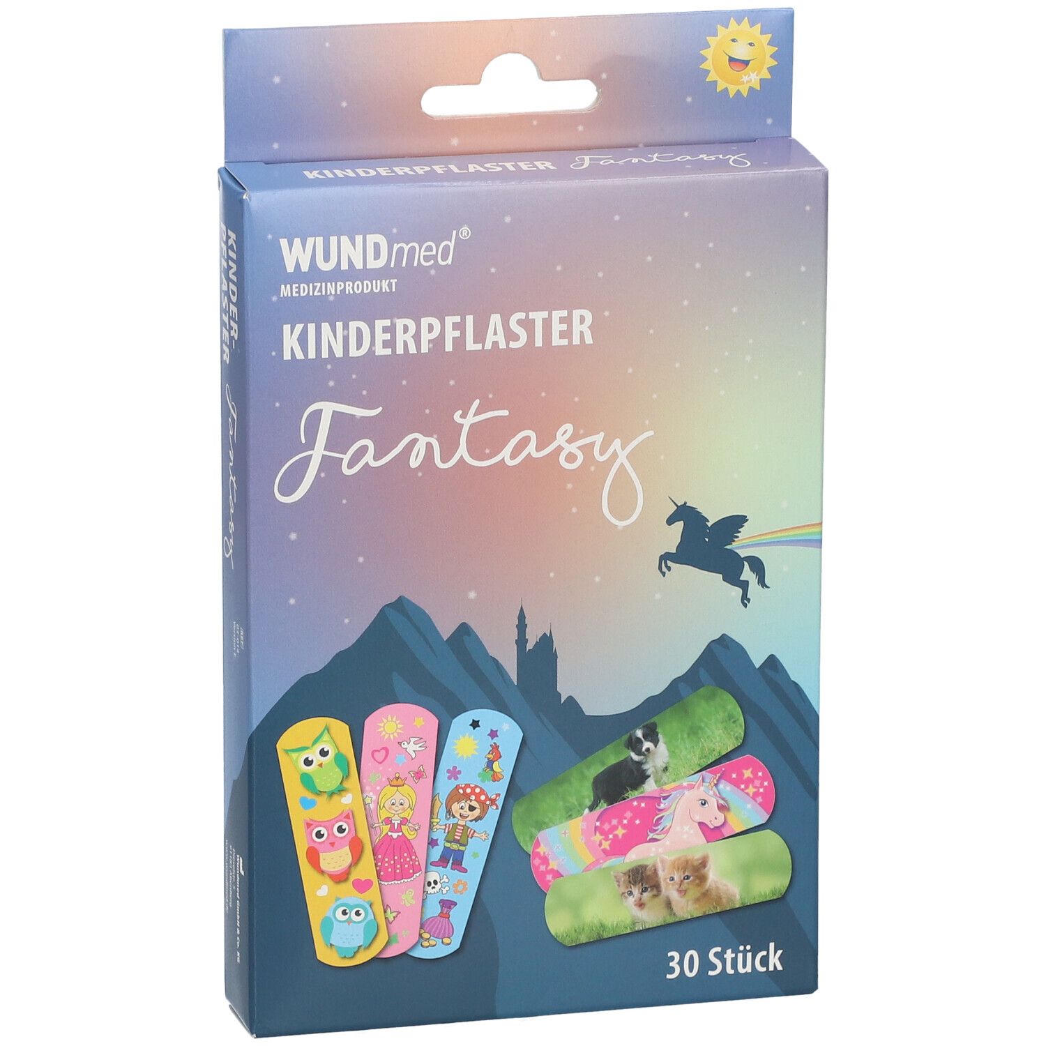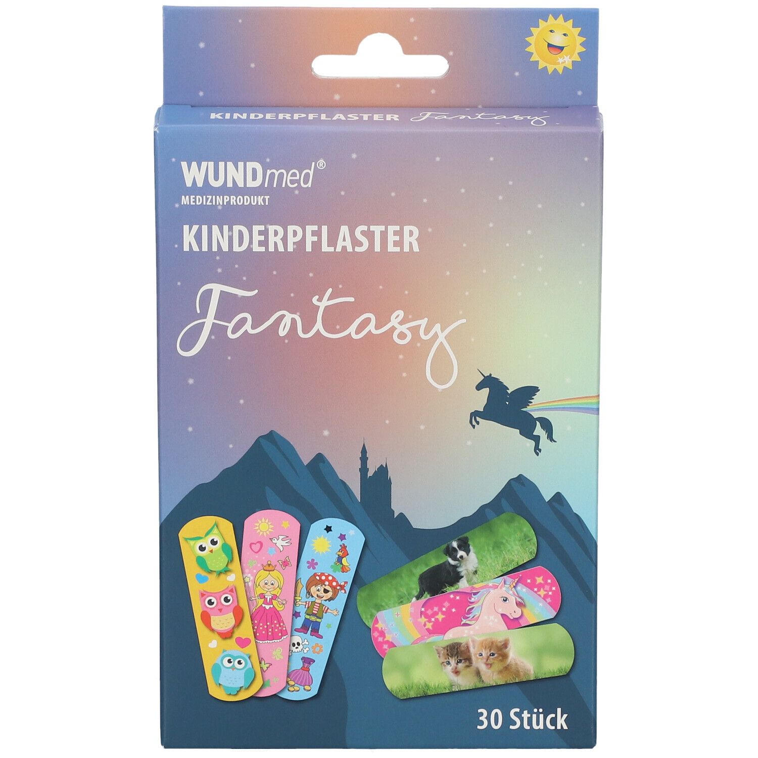 Детские пластыри WUNDmed® Fantasy с веселыми фантазийными мотивами для ухода за небольшими ранами. Клинически протестированы, дерматологически подтверждены, разноцветные. Размер: 30 x 19 x 63 мм.