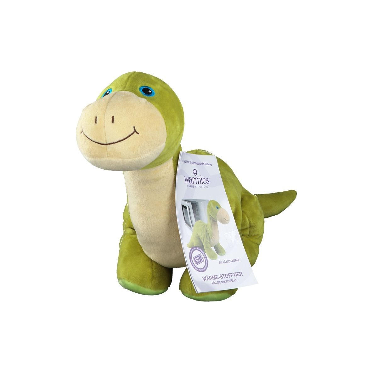 Теплая игрушка-динозавр Brachiosaurus от Warmies с лавандовым ароматом. Длина 30 см, вес 780 г. Можно нагревать в микроволновке или духовке для согревания, охлаждать в холодильнике или морозилке. Помогает детям успокоиться и уснуть.