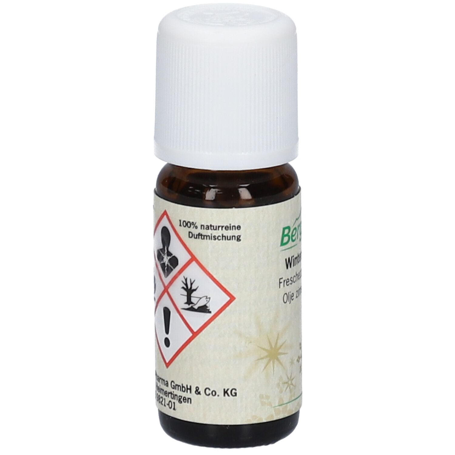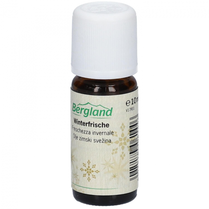 Ароматическое масло Bergland Winterfrische с зимней смесью имбиря, лимона и розмарина для создания свежей и живой атмосферы в помещении. Подходит для использования в аромалампах и на ароматических камнях, обладает бодрящим и освежающим эффектом.