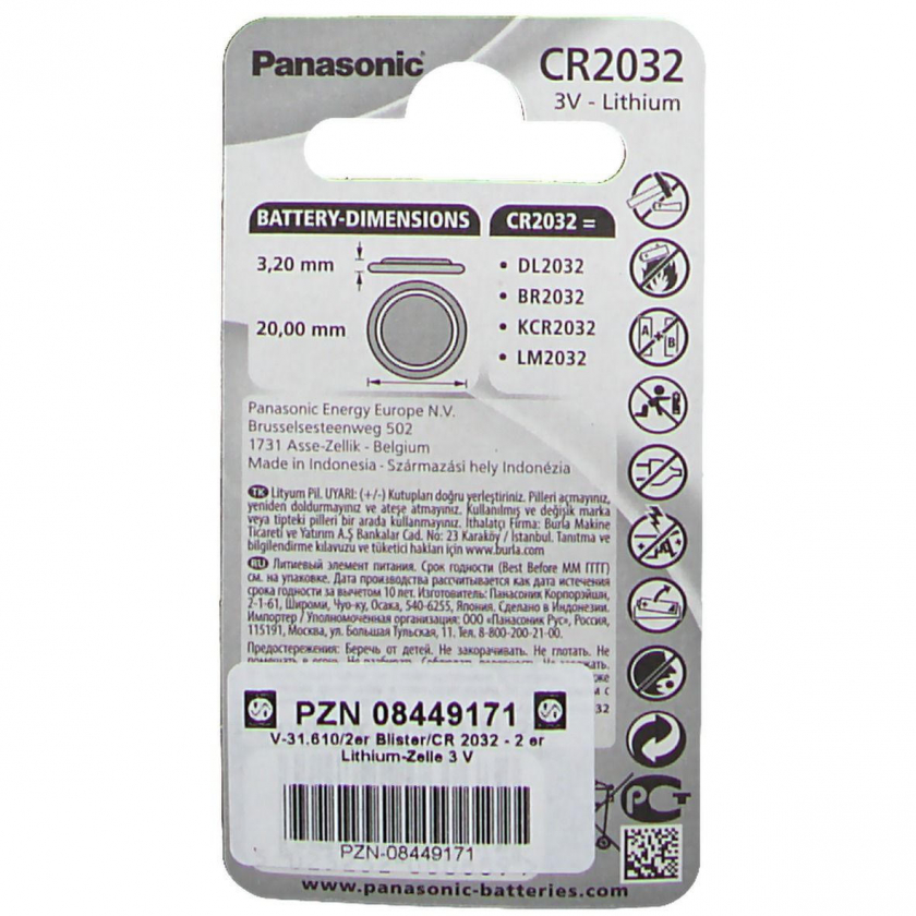 Литиевая батарейка Panasonic CR2032 напряжением 3V для широкого спектра электронных устройств: часы, пульты ДУ, медицинские приборы, игрушки и другая электроника