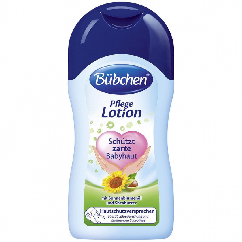Bübchen Pflege Lotion - нежная лосьон для ухода за кожей младенцев, обогащенная маслом ши и подсолнечным маслом. Обеспечивает интенсивное увлажнение, защищает нежную детскую кожу, восстанавливает ее естественный барьер. Без минеральных масел, консервантов, красителей и аллергенных отдушек. Дерматологически протестирован, рекомендован акушерами и врачами.