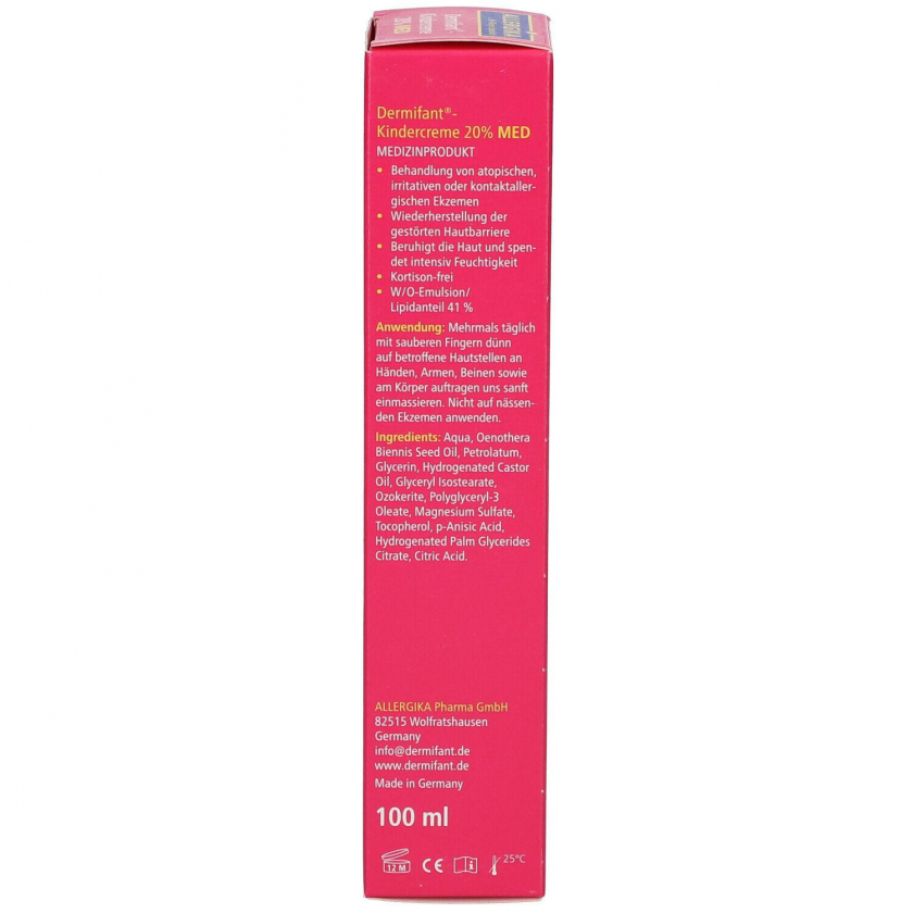 Кортизон-бесплатный крем для детей Dermifant® с 20% маслом энотеры для лечения сухих экзем у младенцев и детей. Восстанавливает кожный барьер, уменьшает зуд, покраснения, шелушение и сухость кожи. Клинически протестирован, не содержит аллергенов, произведен в Германии