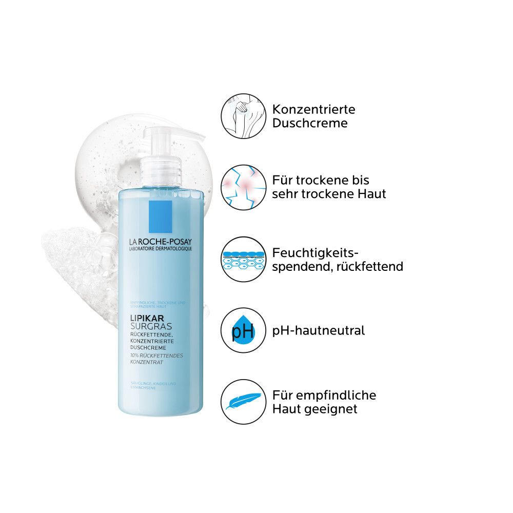 La Roche Posay Lipikar Surgras Rückfettende, konzentriertes Duschgel für trockene, empfindliche Haut