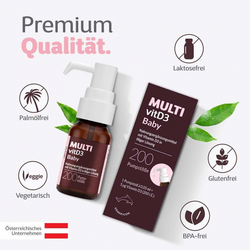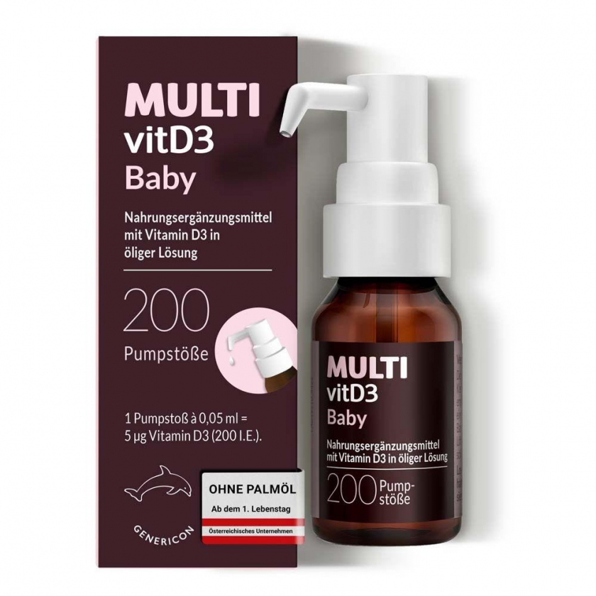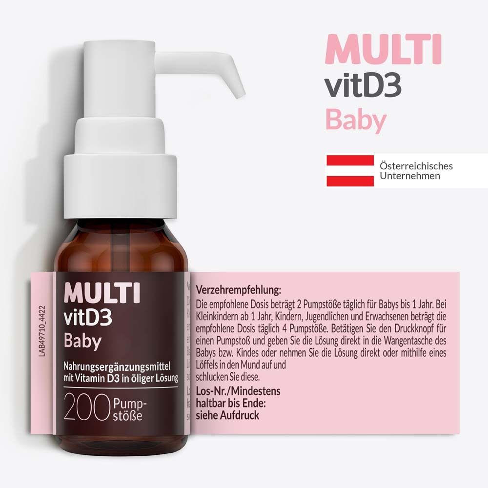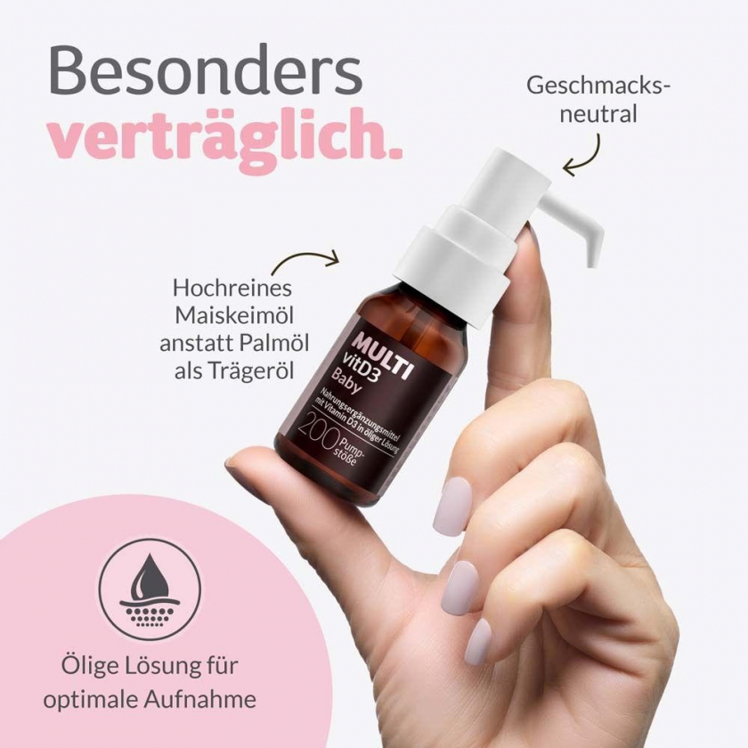 MULTIvitD3 Baby – Vitamin D3 für Babys und Kleinkinder mit praktischer und leicht anzuwendender Dosierpumpe