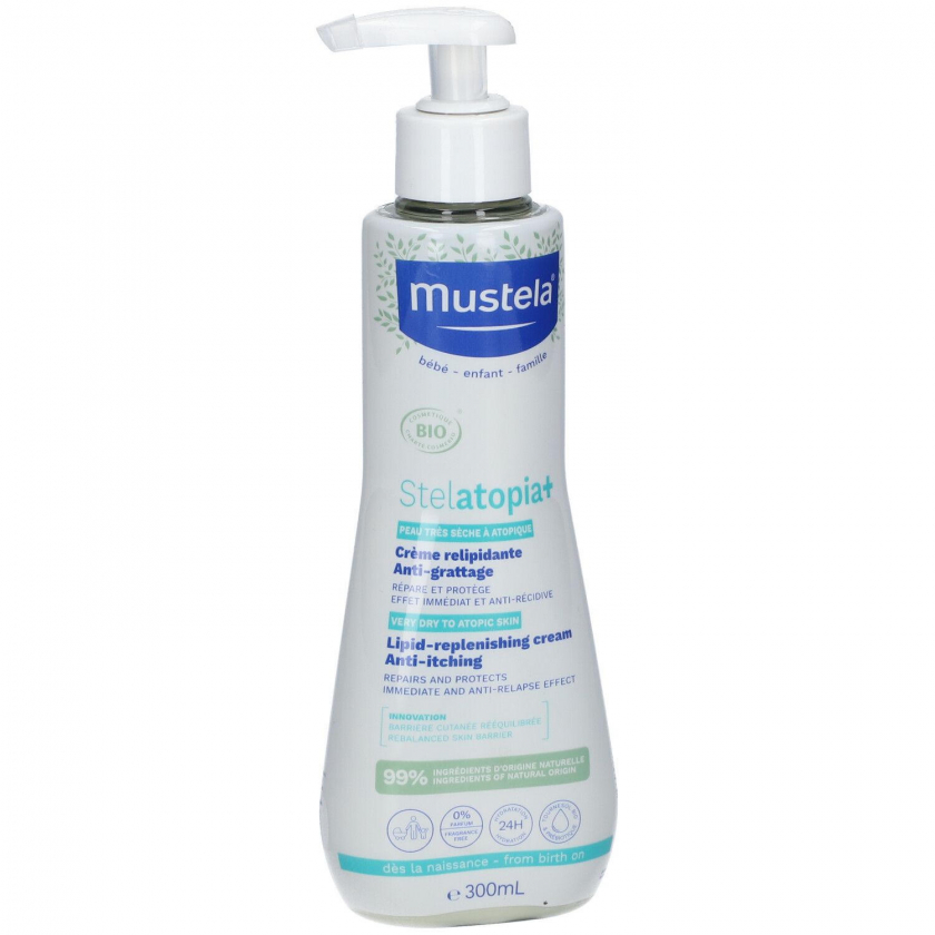 Восстанавливающая крем-эмолент Mustela Stelatopia+ для ухода за очень сухой и атопической кожей. Укрепляет кожный барьер, снимает зуд, увлажняет и восстанавливает кожу. Подходит для лица и тела с рождения для всей семьи. Имеет органическую сертификацию BIO.
