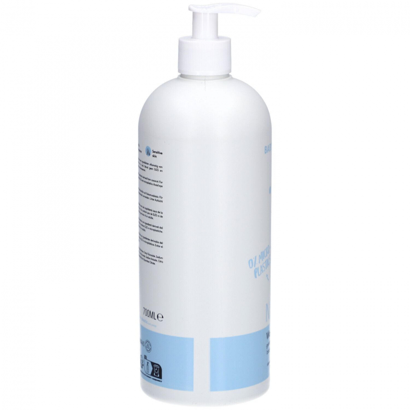 Мягкий гель для мытья без микропластика для чувствительной детской кожи. Содержит натуральные ингредиенты, не содержит мыла и SLES, предотвращает сухость кожи. Дерматологически протестирован.
