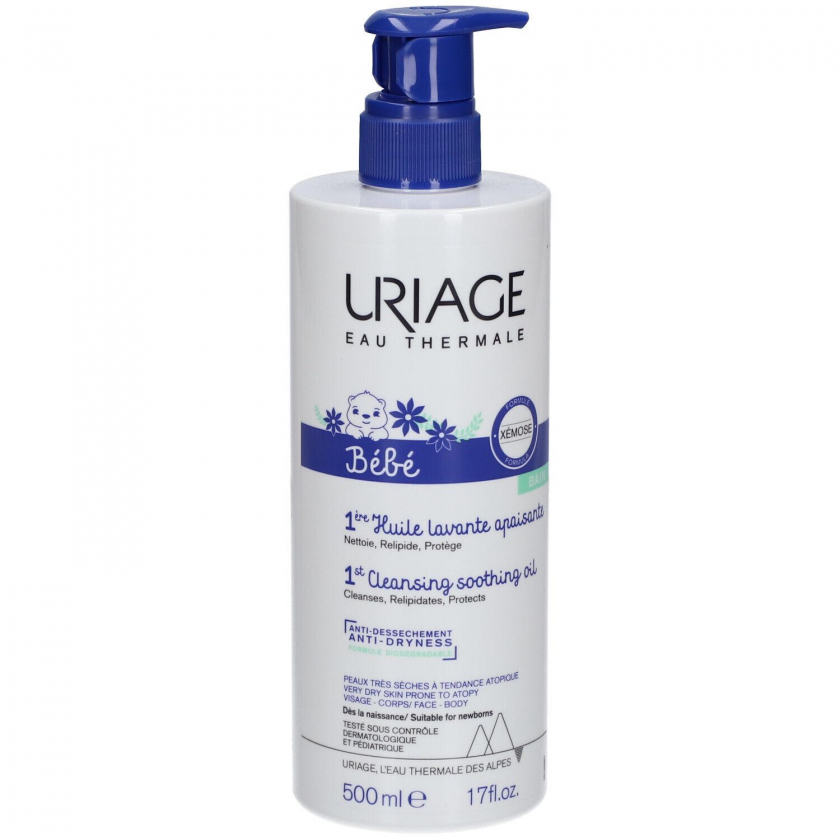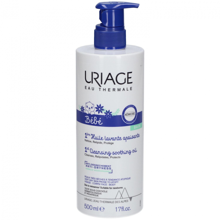 Успокаивающее очищающее масло URIAGE Baby Xemose для детей с очень сухой, склонной к атопии кожей. Без мыла и парфюма, содержит увлажняющие и восстанавливающие компоненты, защищает от сухости, снимает зуд и оставляет защитную пленку на коже.