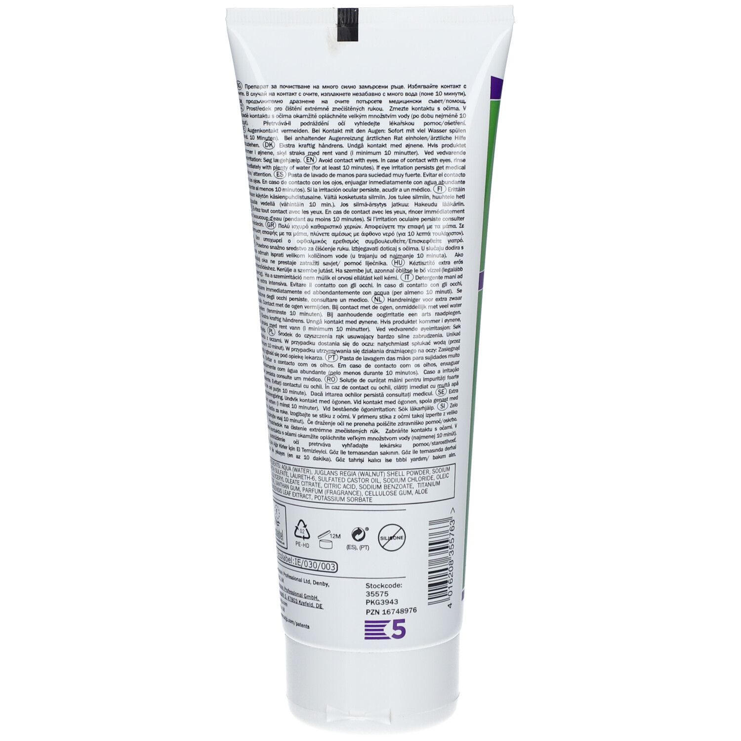 Состав: Вода, порошок из скорлупы грецкого ореха, лауретсульфат натрия, лаурет-6, сульфированное касторовое масло, хлорид натрия, олеиновая кислота, цитрат олеата глицерила, лимонная кислота, бензоат натрия, диоксид титана, ксантановая камедь, парфюмерная композиция, целлюлозная камедь, экстракт листьев алоэ вера, сорбат калия