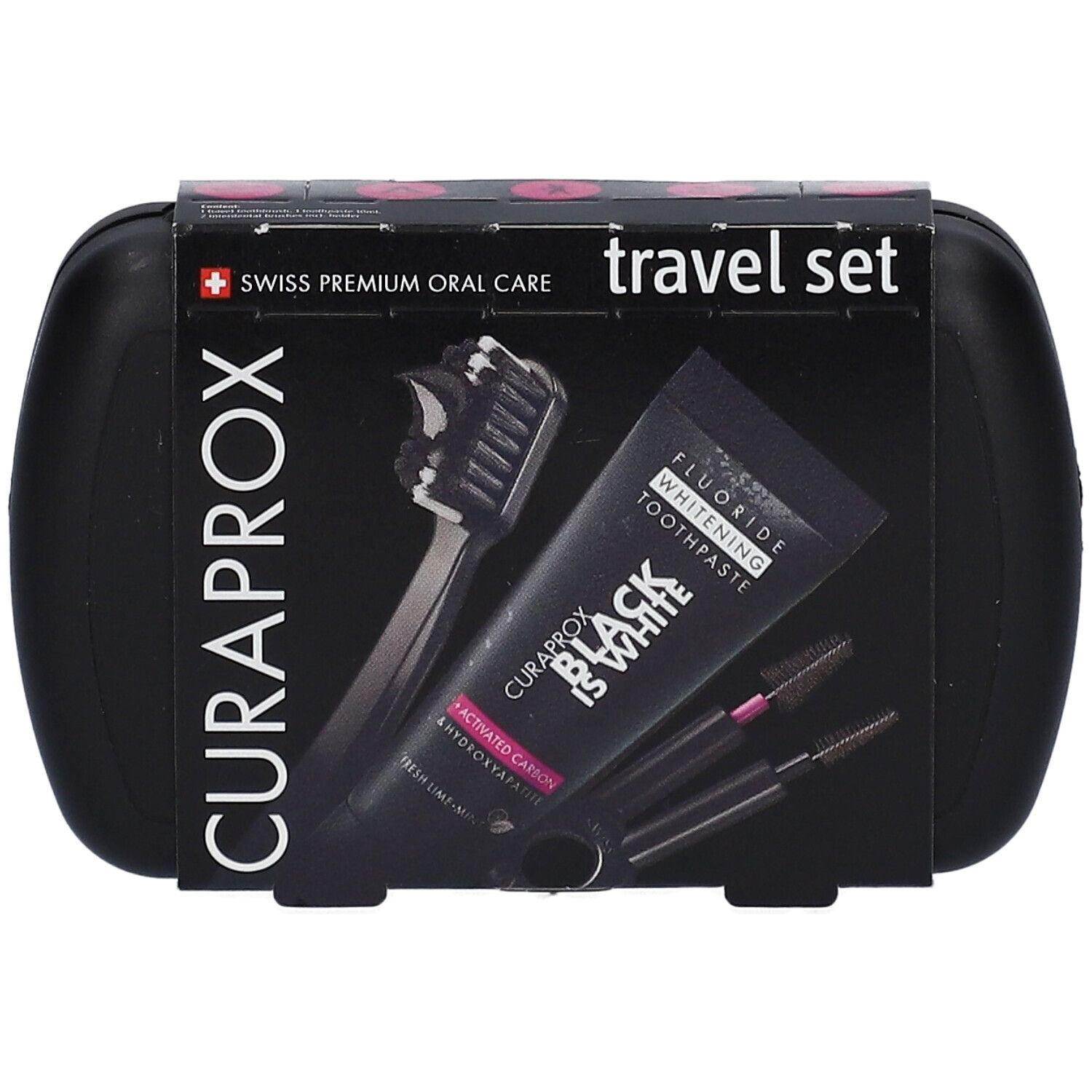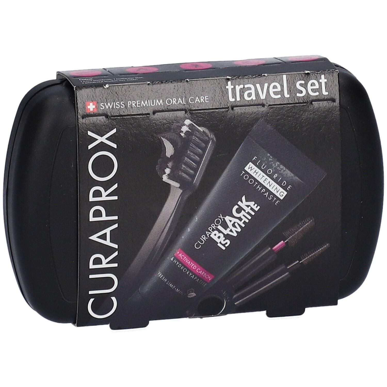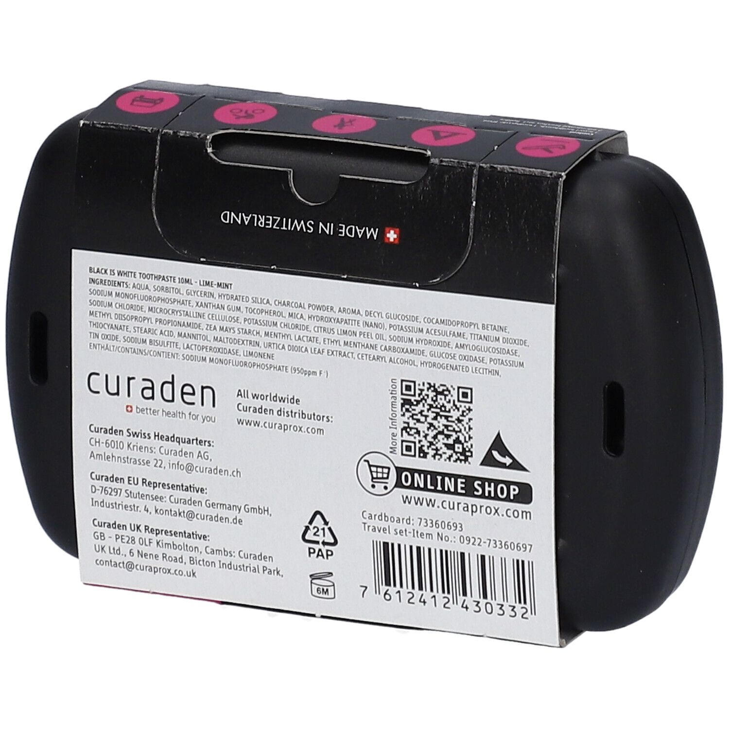 Дорожный набор Curaprox Black is White для гигиены полости рта включает зубную щетку с 5100 щетинками Curen® и отбеливающую зубную пасту с активированным углем. Набор обеспечивает бережную чистку зубов и десен, удаление налета и пятен без абразивного воздействия. Содержит фторид для укрепления эмали и гидроксиапатит для реминерализации. Без SLS, триклозана, отбеливателей и пластиковых частиц.